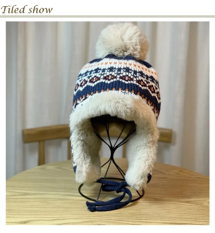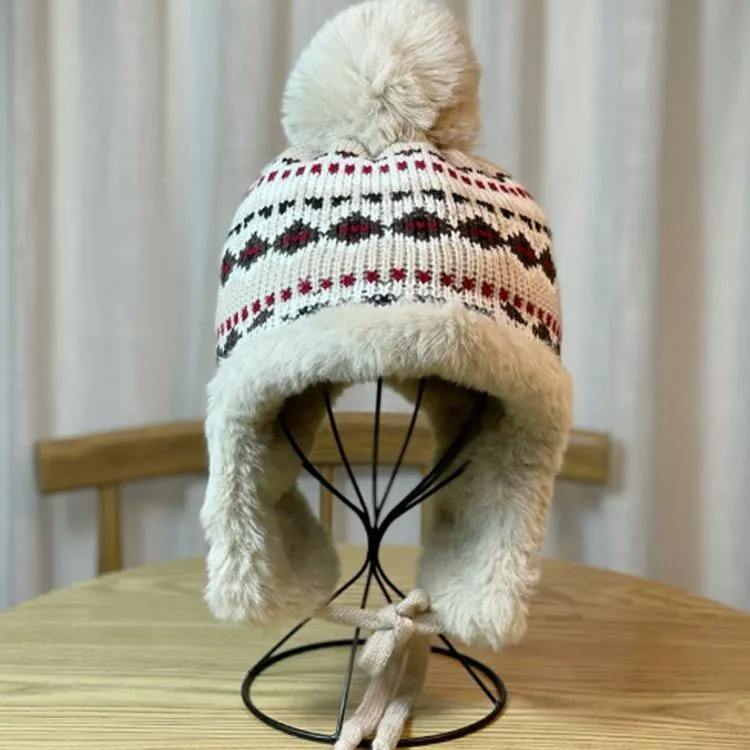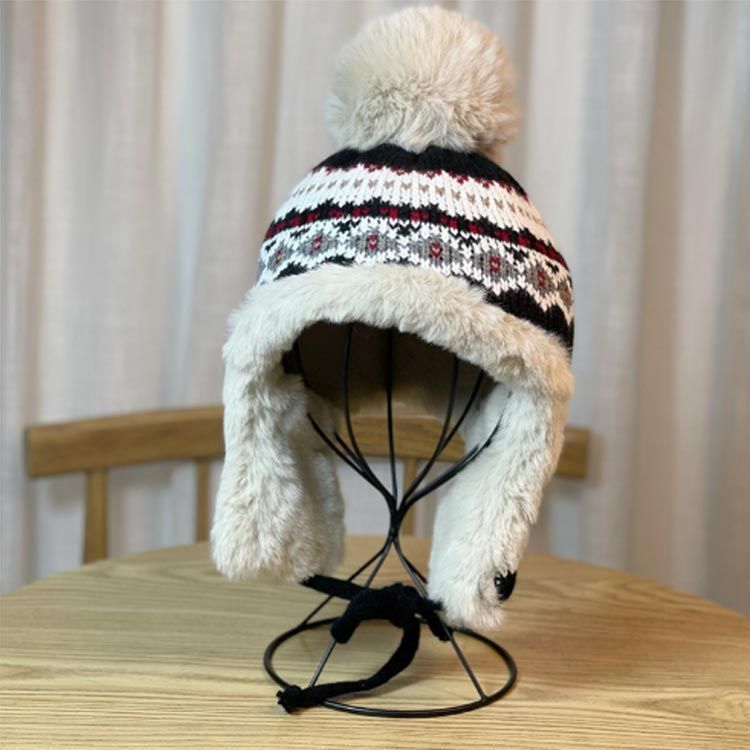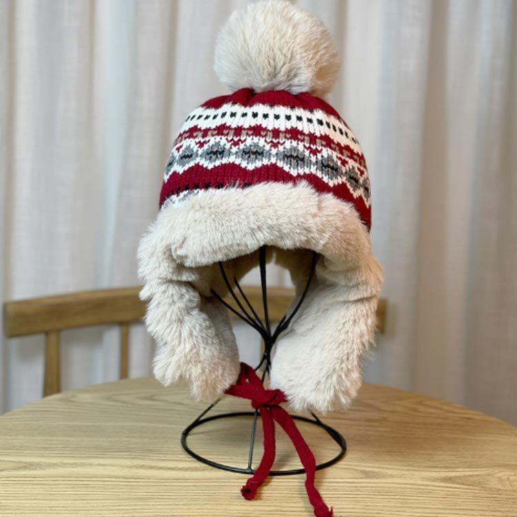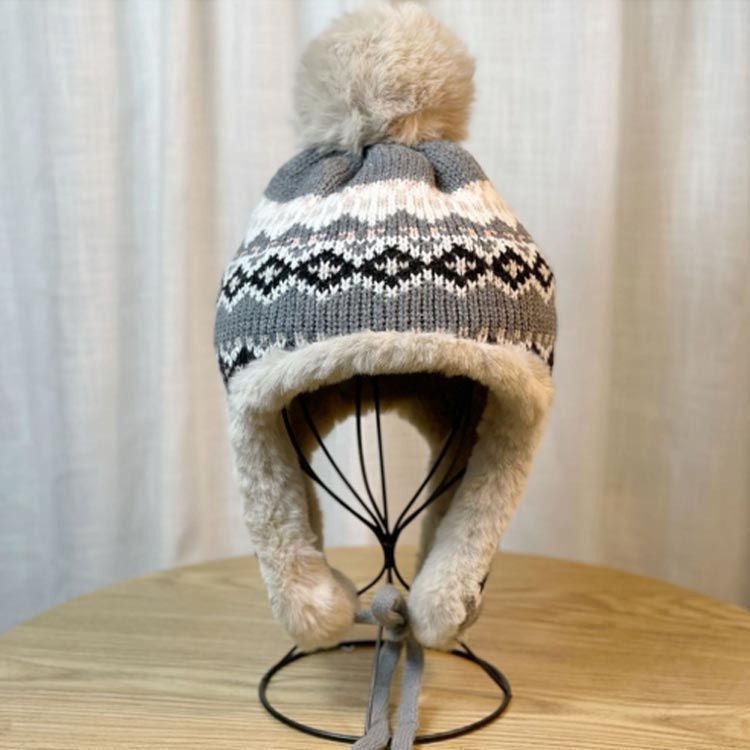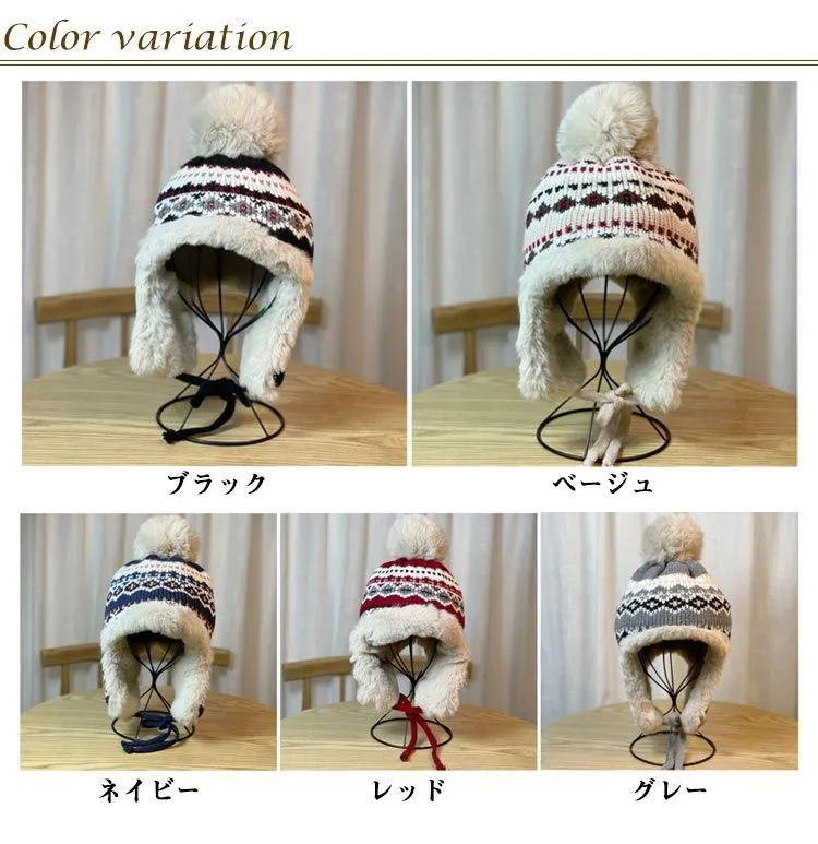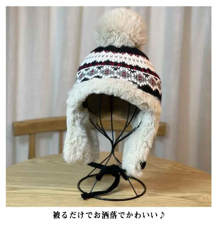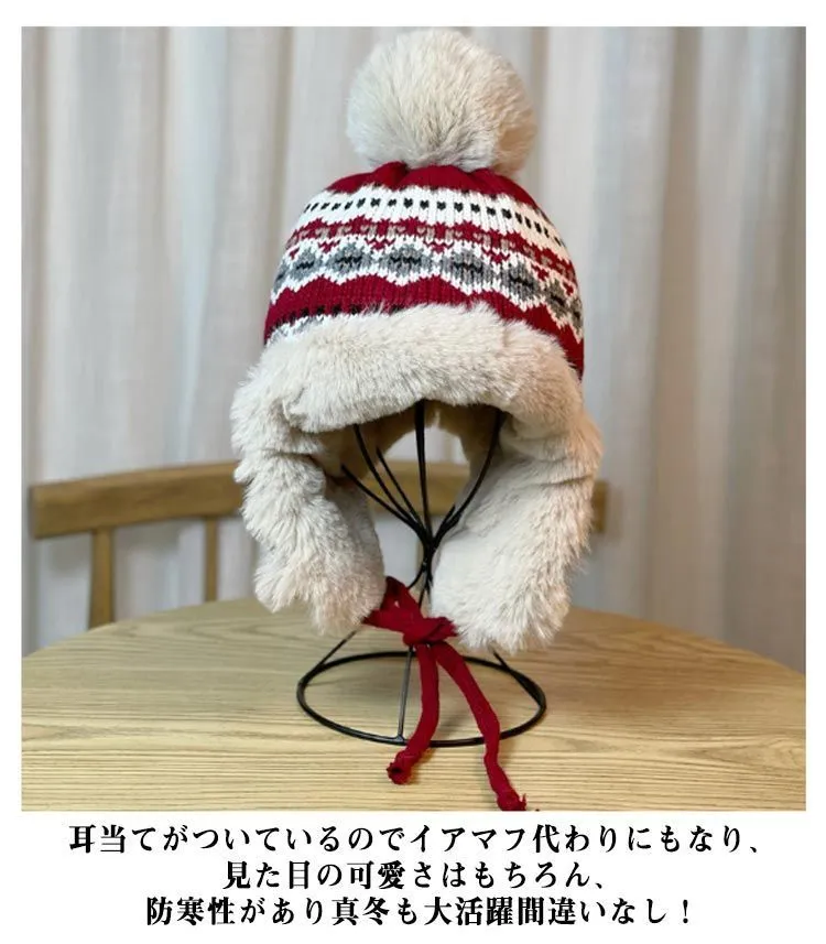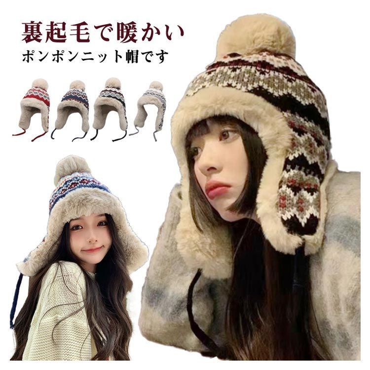 あたっか 冬物 レディース ニットキャップ ニット帽 耳あて付き ニット帽子 ポンポン付き 防寒 裏起毛 大人可愛い 帽子 スノボ 耳付き 厚手 ノルディック柄 ボアフリース スキー 秋冬 スノーボー#yuzuc566044