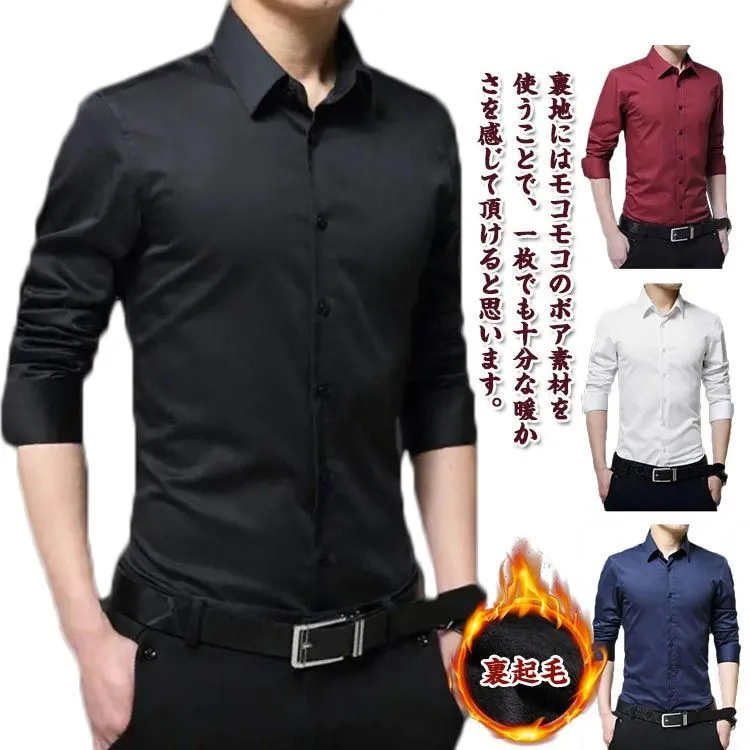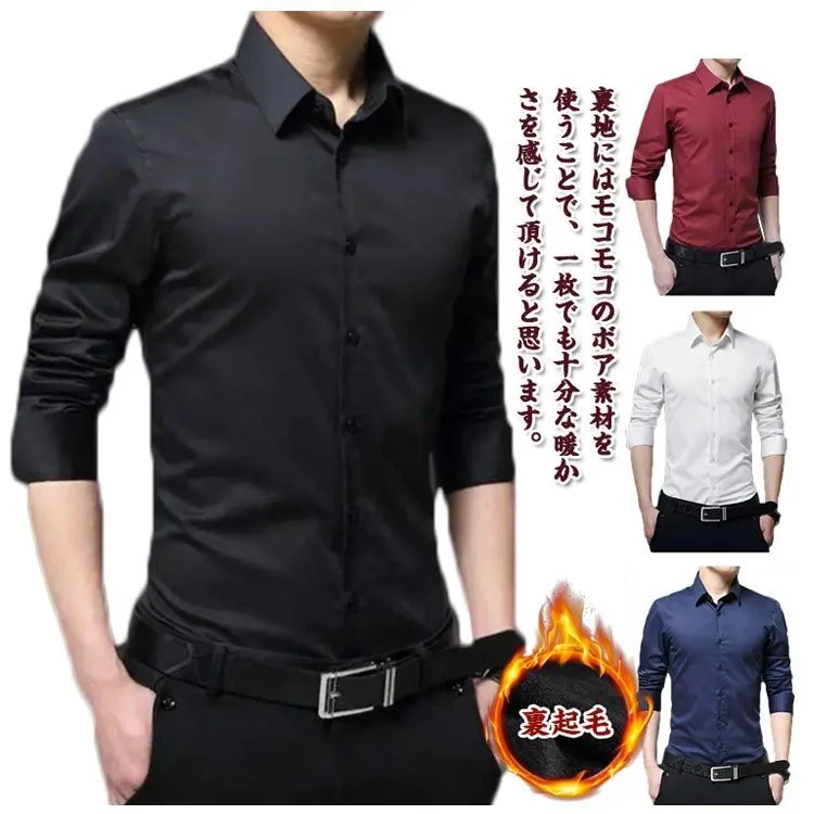 形態安定 暖かい おしゃれ 裏起毛 60代 シャツ あったか 厚手 ワイシャツ シャツ もこもこ Yシャツ 秋 春 ビジネス 冬 大きいサイズ 防寒 紳士 裏起毛 カジュアル ノーアイロン 無地 冠婚#yuzuc561866
