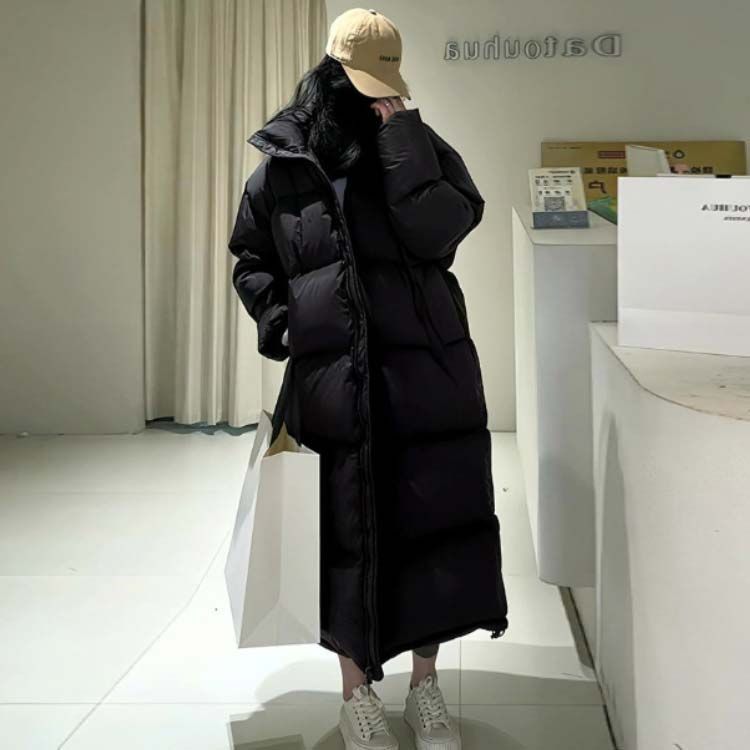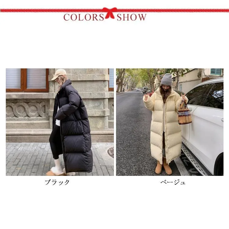 ロングコート バイク 通学 レディース ジャンパー 厚手 ロングコート 秋冬 暖かい 中綿 ハイネック ボリューム 通学 アウター ロングコート ブルゾン 通勤 通勤 ロング中綿コート ブラック#yuzuc561859