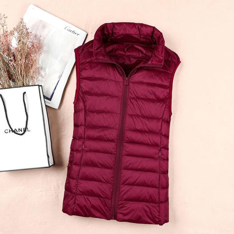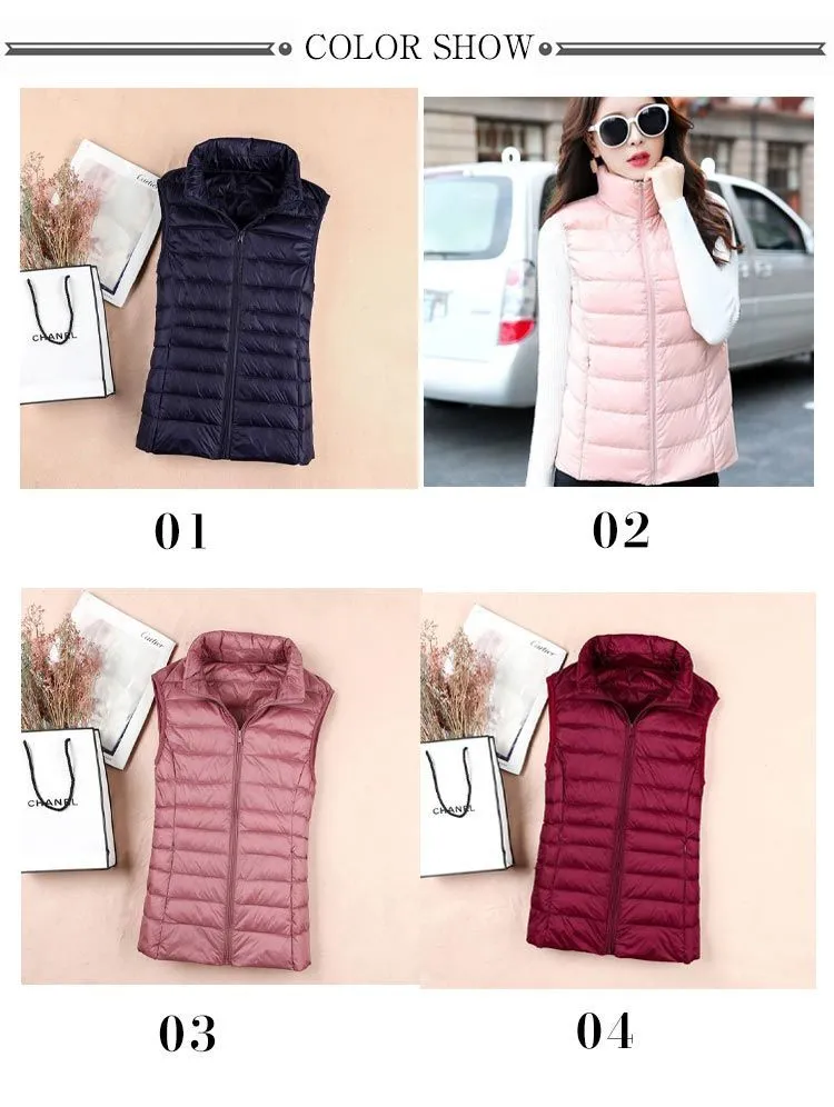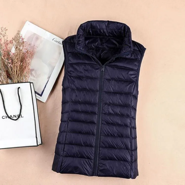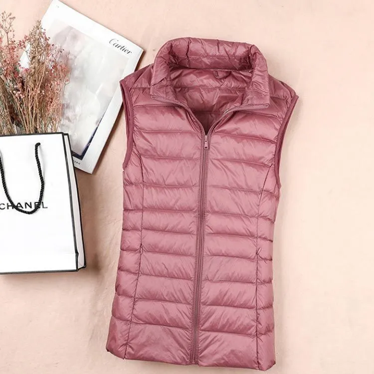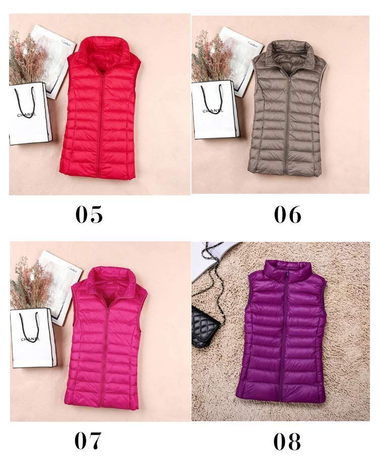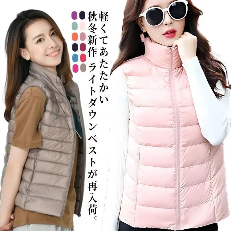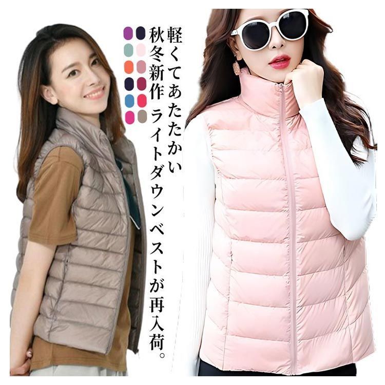 M-8XL インナー ダウンベスト レディース 秋 冬 春 インナーダウン ライトダウン ベスト 収納袋付き ノーカラー スタンドカラー ダウン スタンドカラー 薄手 軽量 防寒着 ジップアップ ルー#jzxd1092
