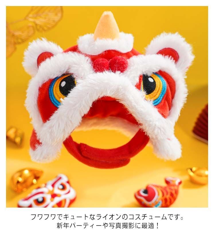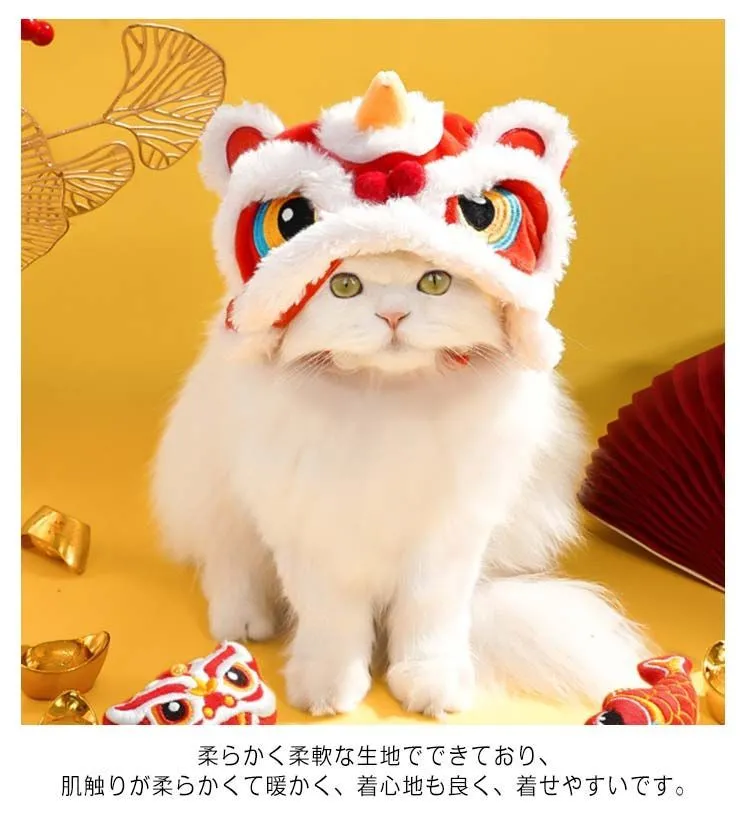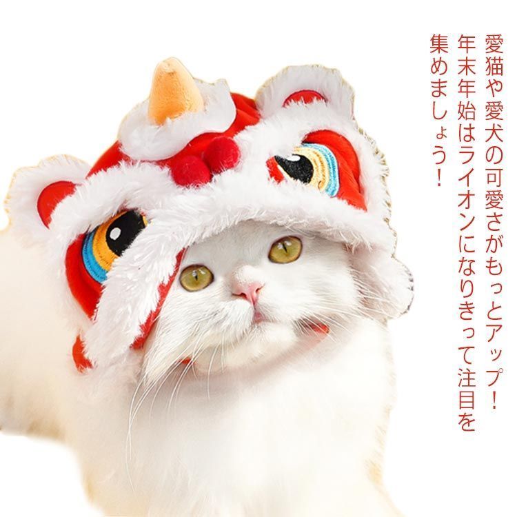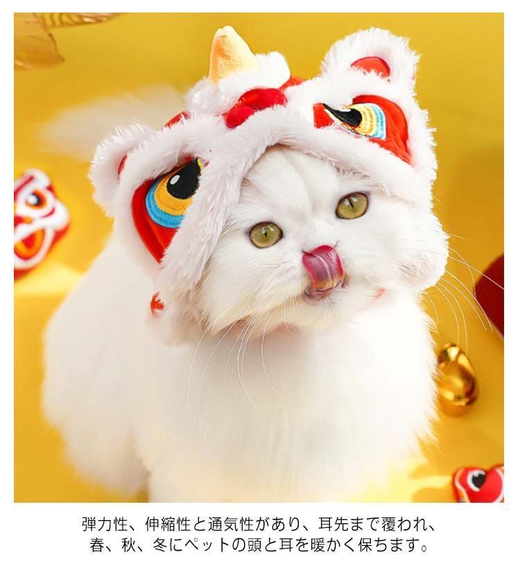 キャップ 猫 ライオンの帽子 被り物 かぶりもの コスチューム 着ぐるみ ペット帽子 獅子舞 変身ほっかむり 猫用 辰 犬 コスプレ クリスマス 犬用 暖かい 防寒対策 ハロウィン ペット帽子 c パ#ikawa581942