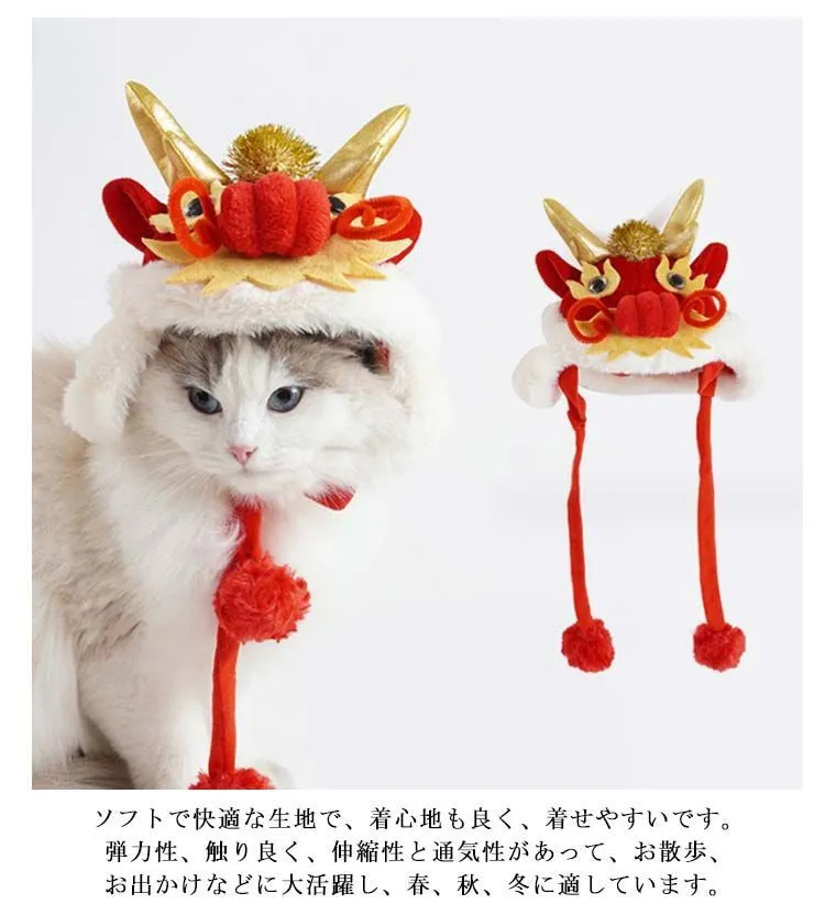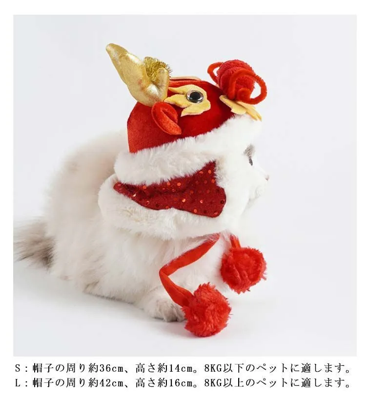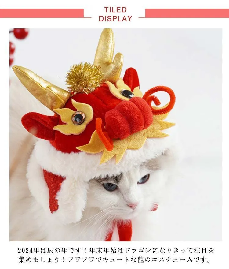 2024年辰龍 愛犬や猫をこの竜の帽子を着て、ドラゴンに変身します。