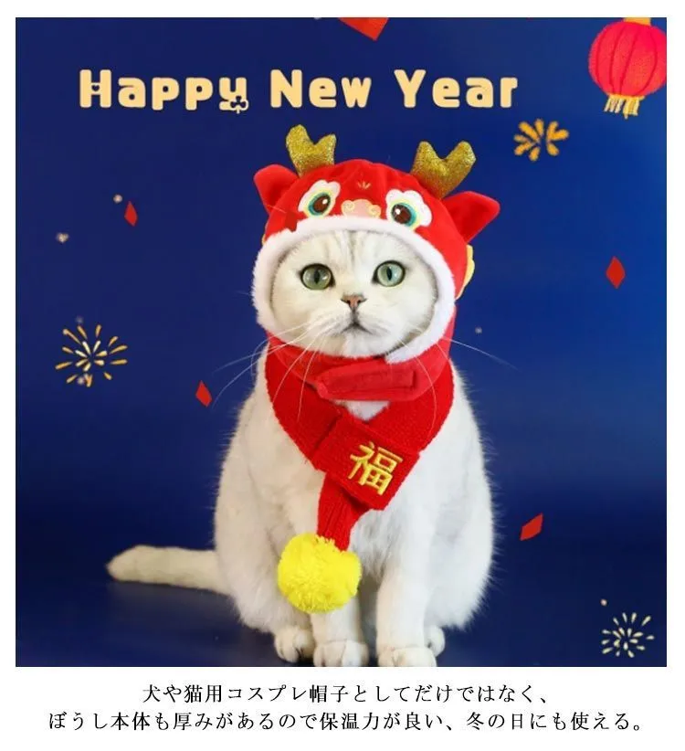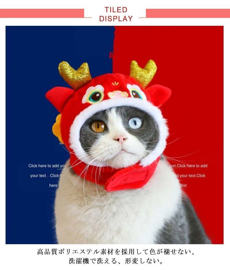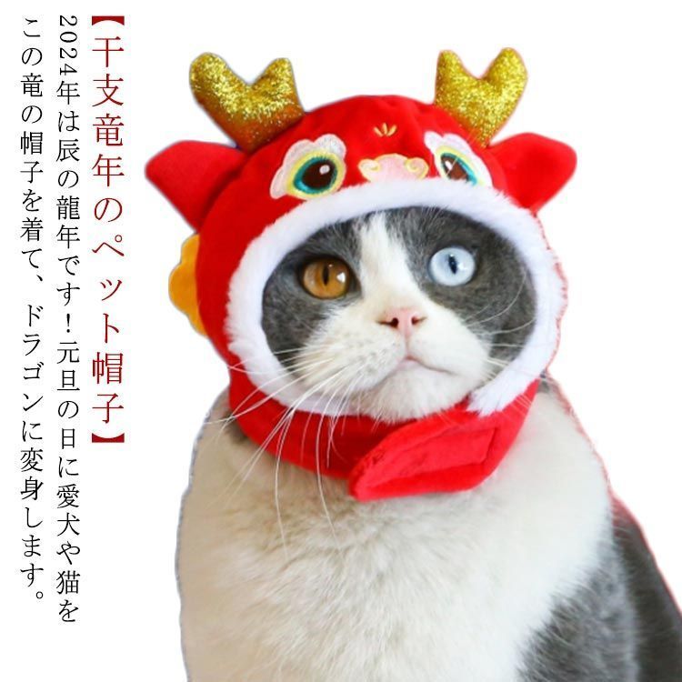 撮影 竜 被り物 かぶりもの ペット帽子 猫 辰 帽子 犬 2024年 ドラゴン 動物 コスチューム ぼうし キャップ 龍 干支 冬用 ペット用品 正月 新年 2024干支 竜年 暖かい 仮装 撮影 #ikawa581921