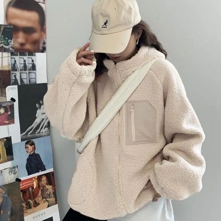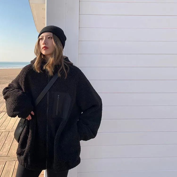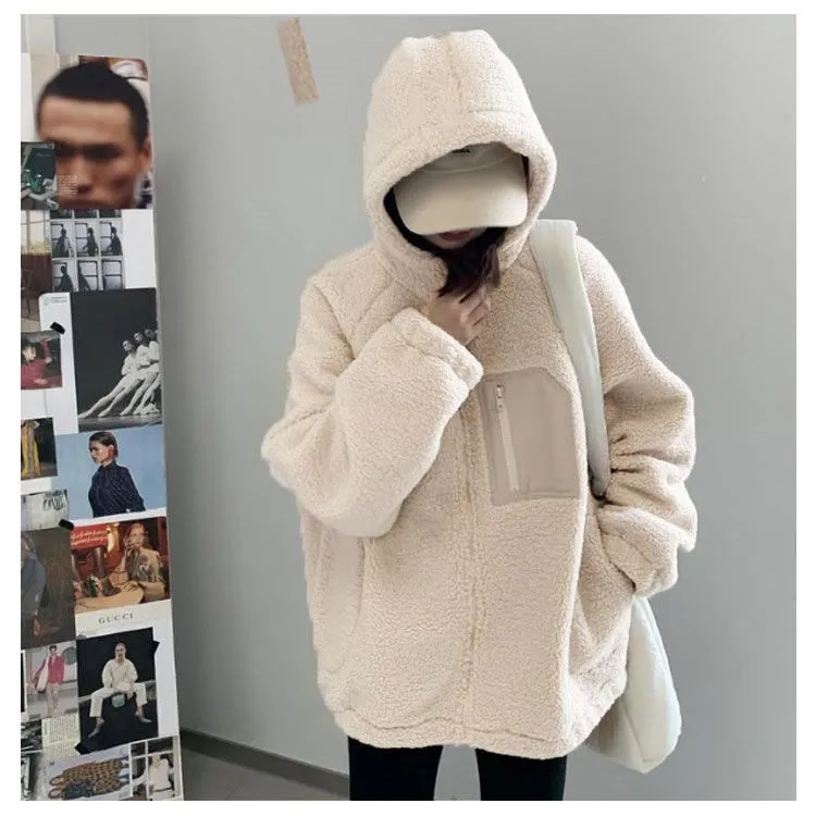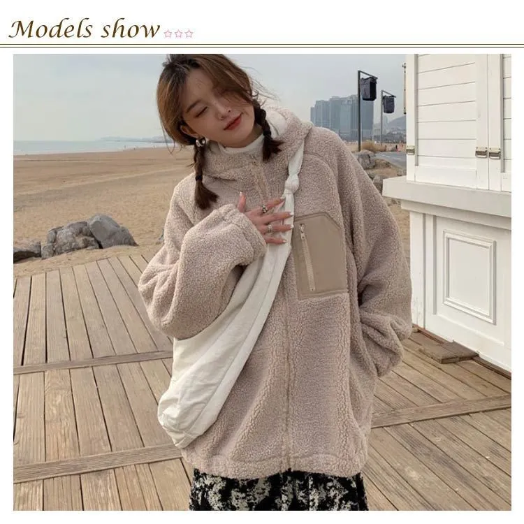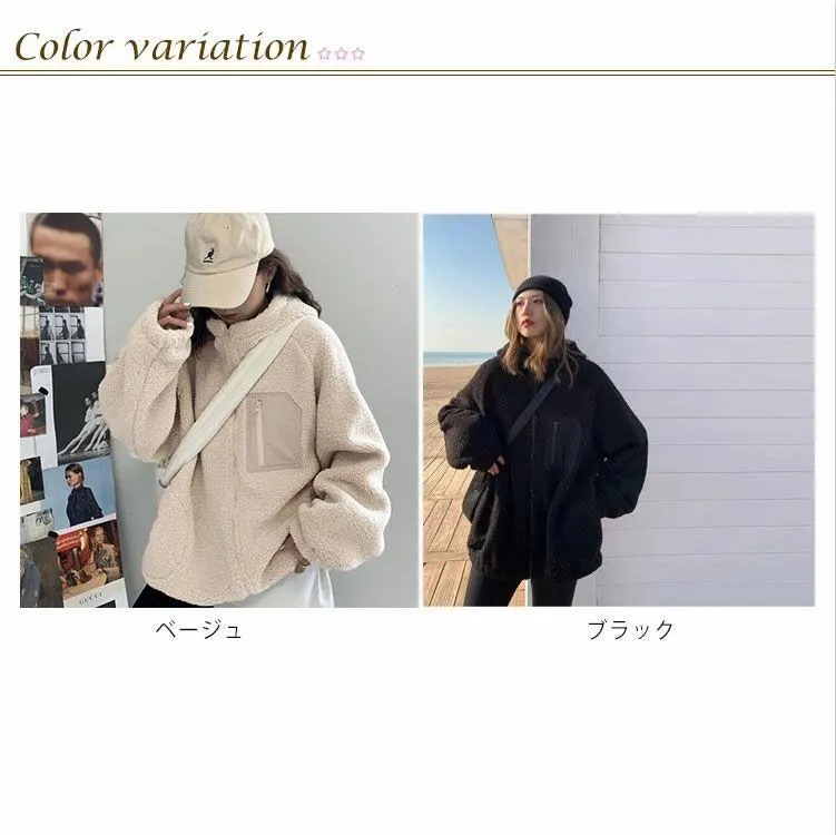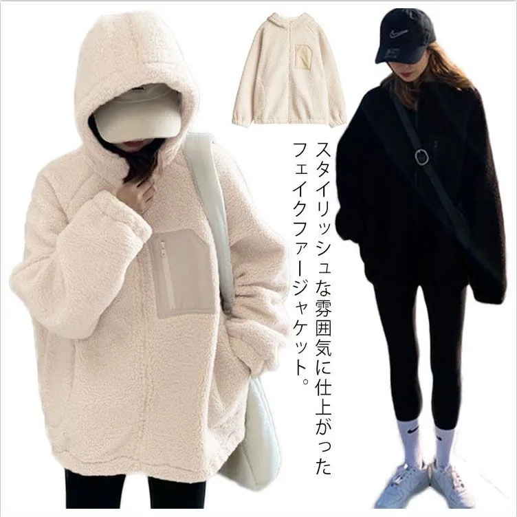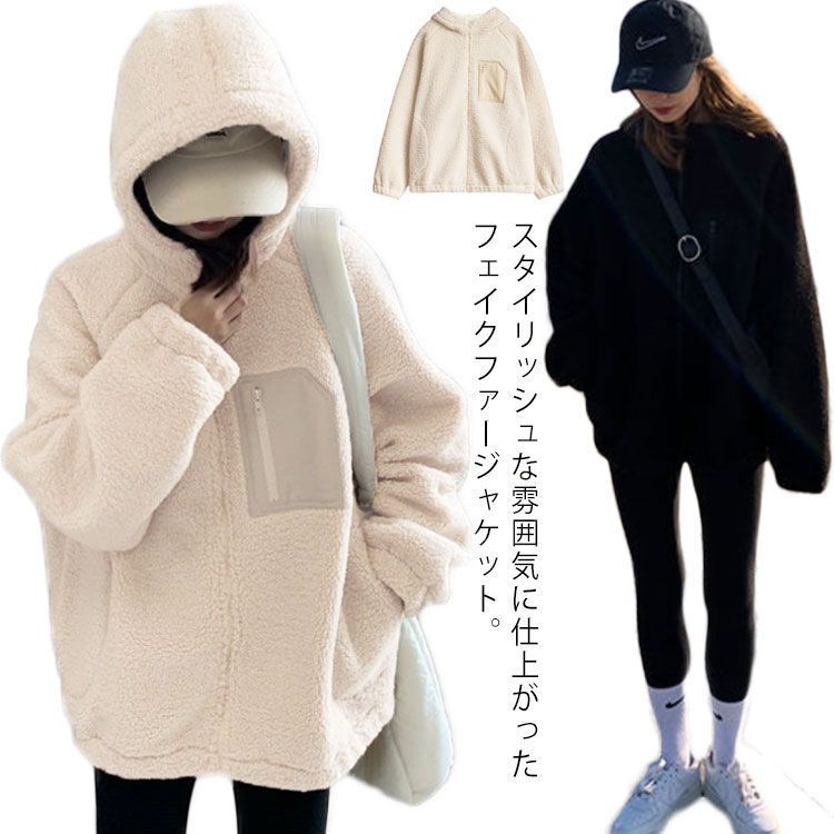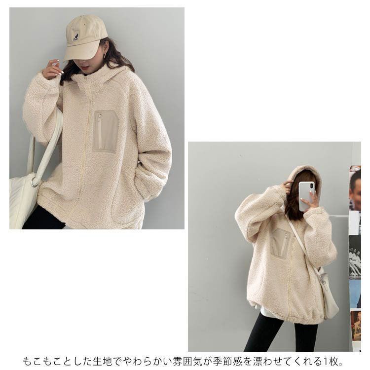 ボアブルゾン ボアジャケット ジャケット アウター アウトドア ブルゾン もこもこ 暖かい ゆったり 秋冬 フード付き 防寒 レディース お洒落 ボアブルゾン 胸ポケット あったか バイカラー#gurug577939