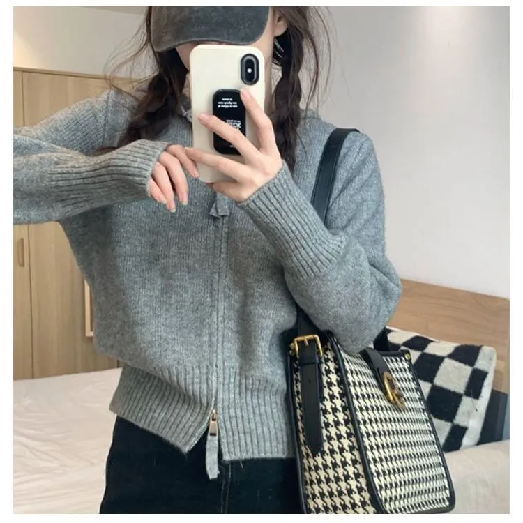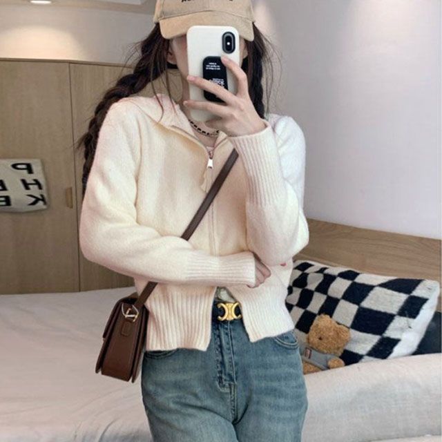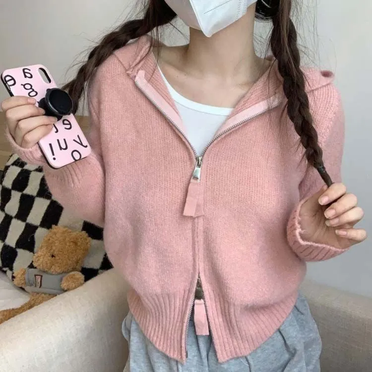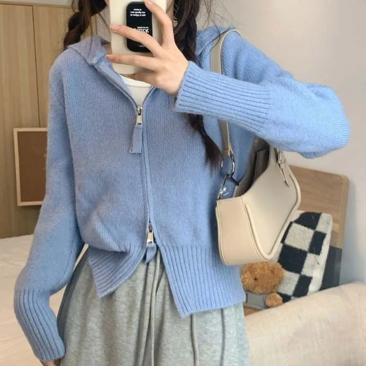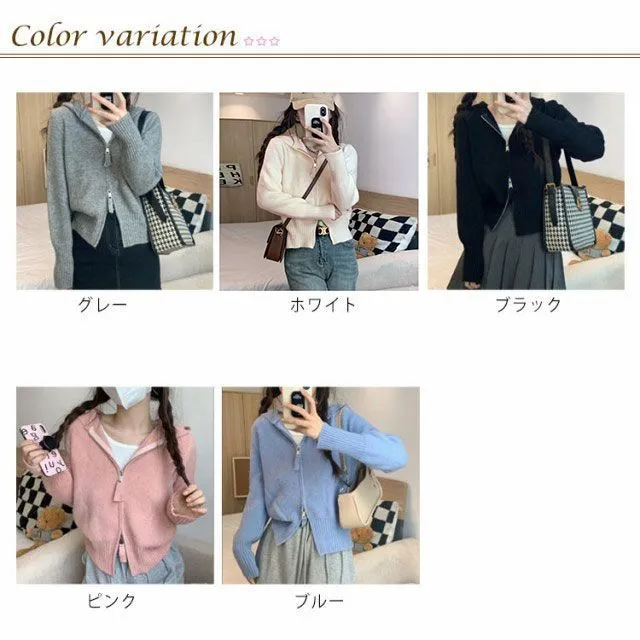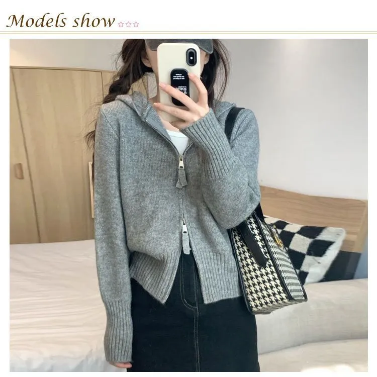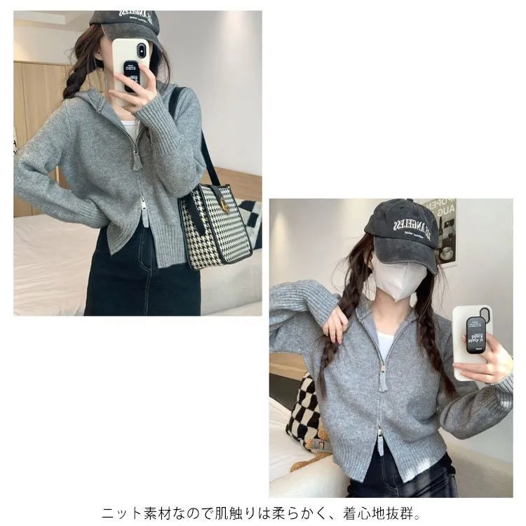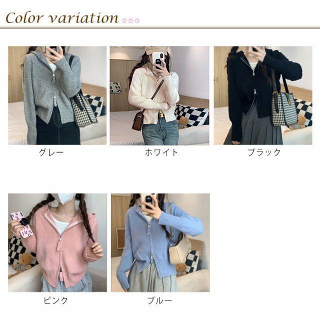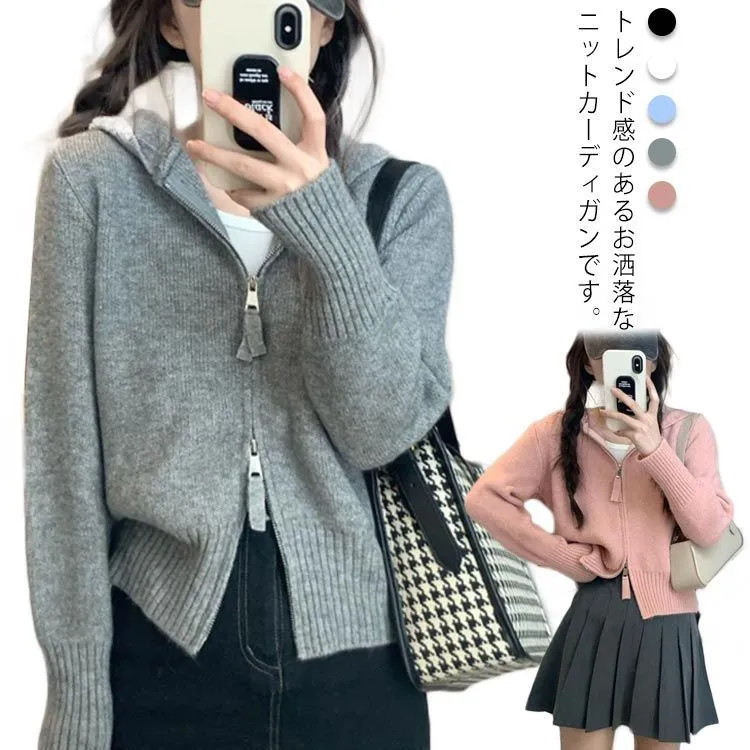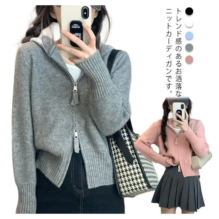 春秋冬 ニットカーディガン カーディガン ゆったり フード付き ショート丈 コーディガン ニットカーディガン ジップアップ トップス トップス きれいめ 無地 レディース 羽織り お洒落 可愛い 通勤#gurug577933