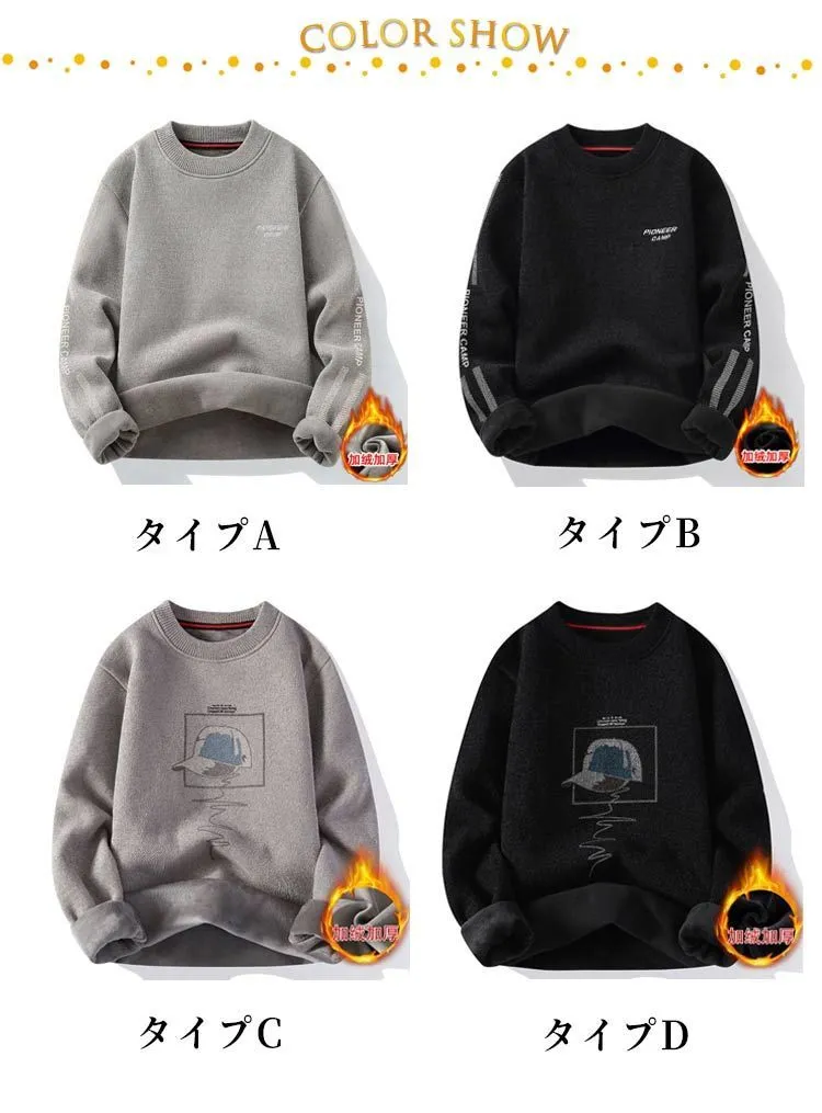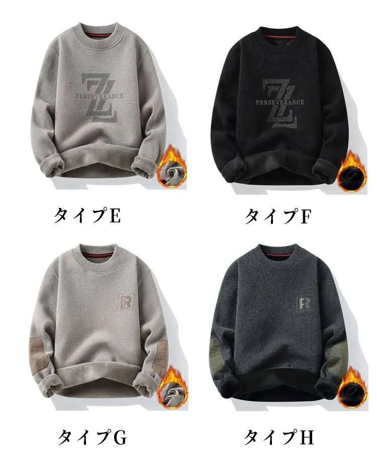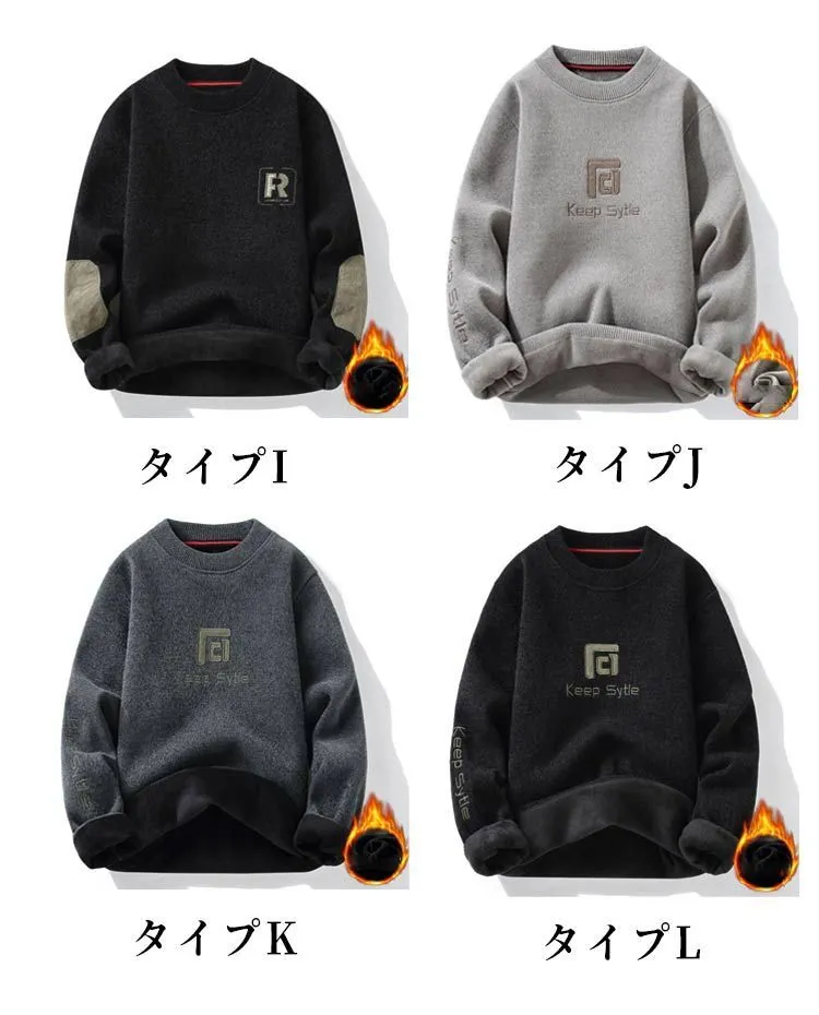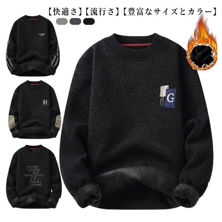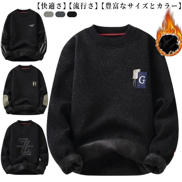 セーター カジュアル ボア 厚手 メンズ ニットセーター ニット 裏起毛 クルーネック リブ編み 秋 おしゃれ 無地 トップス ケーブルニット 暖かい クルーネック ニット シンプル 大人 ゴルフウェ#gurug572319