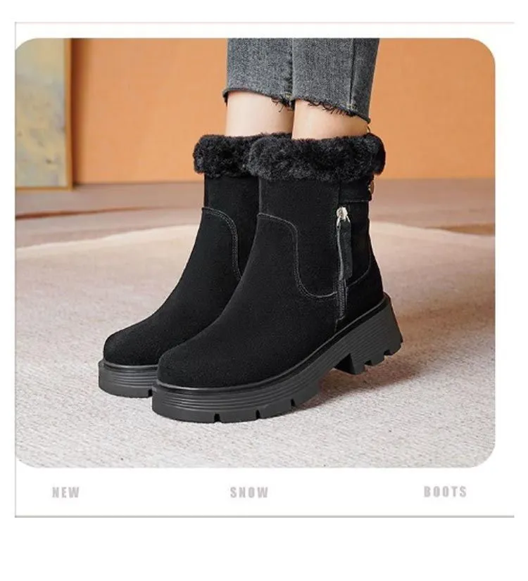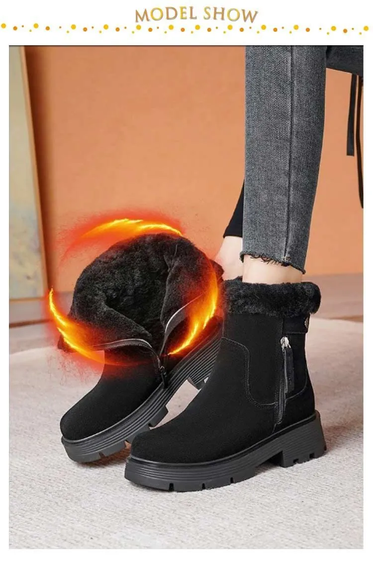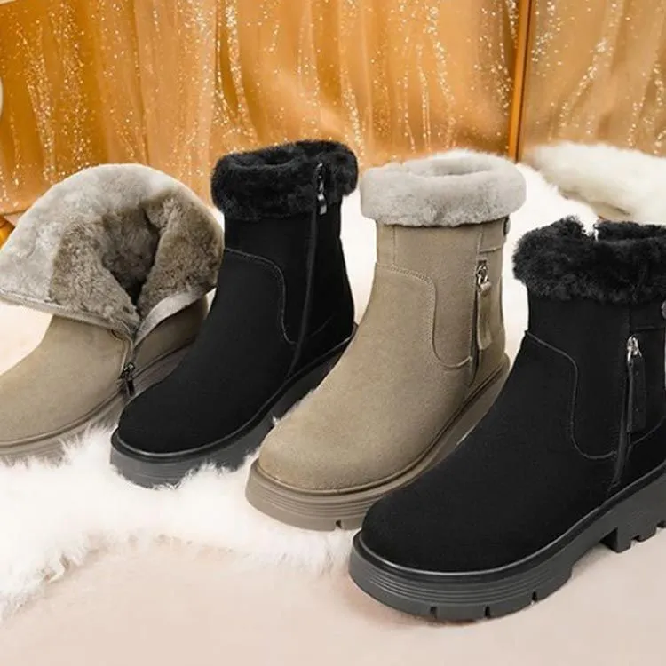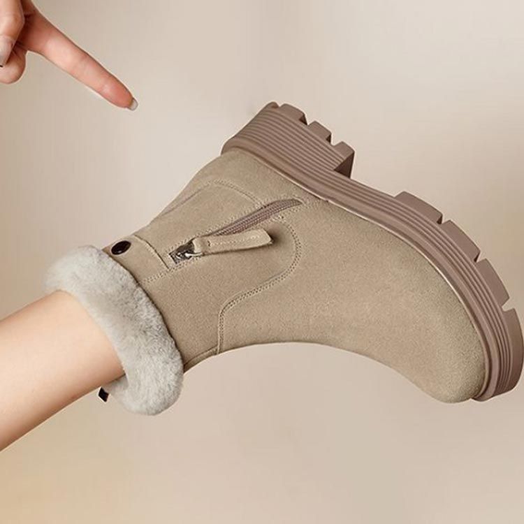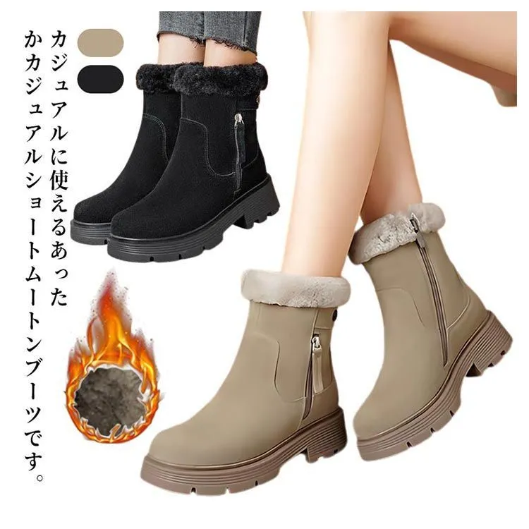 履きやすい レディース サイドファスナー ボア ぺたんこ ブーツ スノーブーツ ローヒール ショートブーツ ムートンブーツ 裏起毛 暖かい 防寒 痛くない 軽量 ワークブーツ 女性 スエード もこもこ#gurug572314