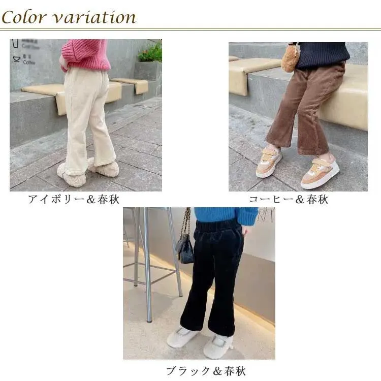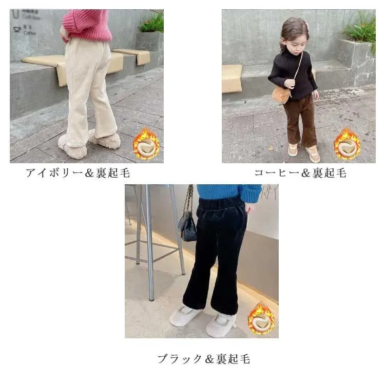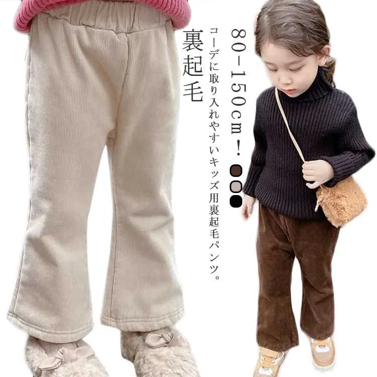 子ども キッズ ワイドパンツ 子供服 厚手 暖かい コーデュロイ 女の子 80 ロングパンツ フレアパンツ 裏起毛パンツ 男の子 120 パンツ ウエストゴム ボトムス 長ズボン ガウチョパンツ 防寒#gurug572299