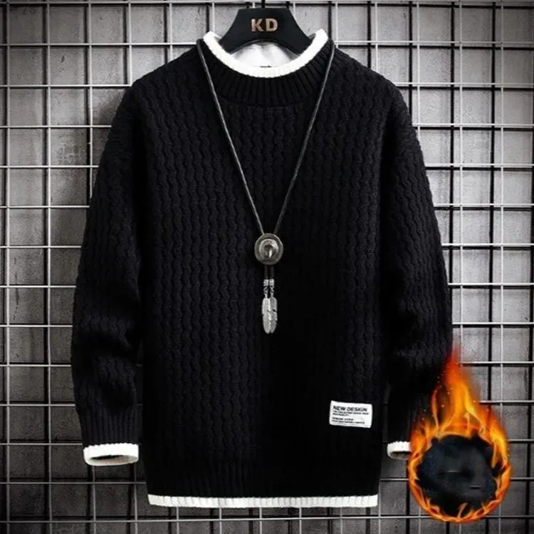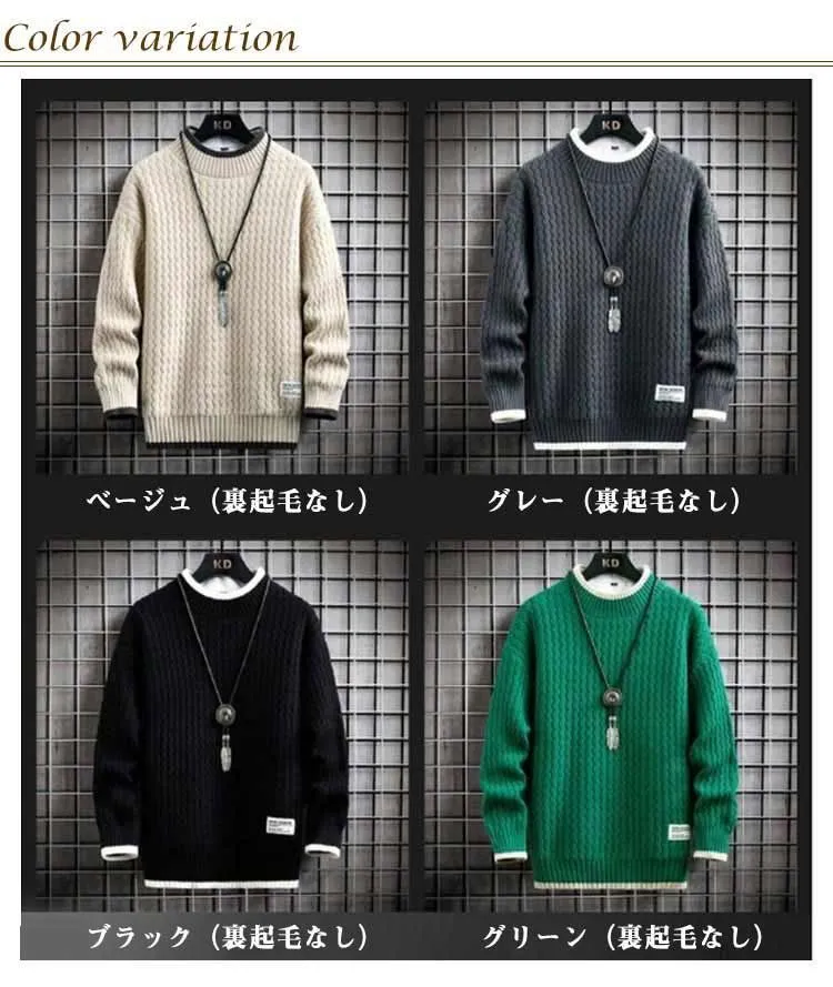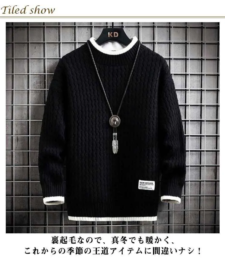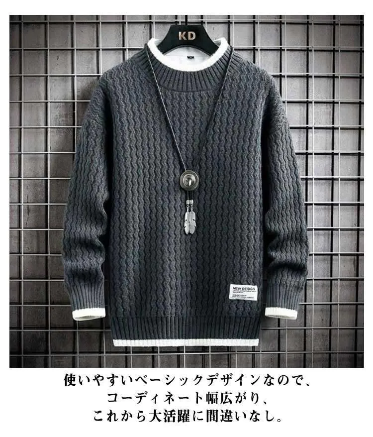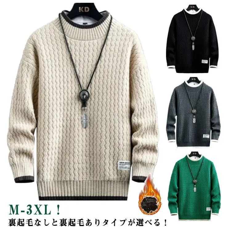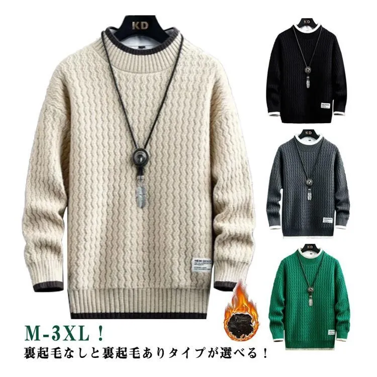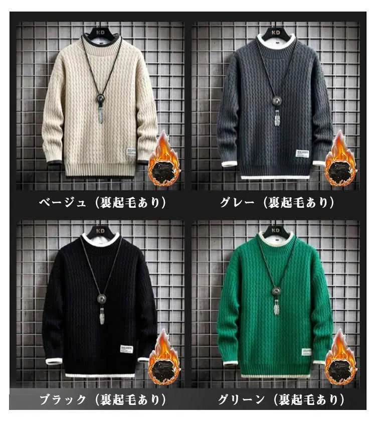 セーター メンズ 長袖 裏ボア 秋冬服 裏起毛 冬服 トップス 厚手 プルオーバー 暖かい 無地 ニット ニットセーター あったか クルーネック 韓国風 カジュアル 防寒 大きいサイズ 春 秋 冬 お#conne564985