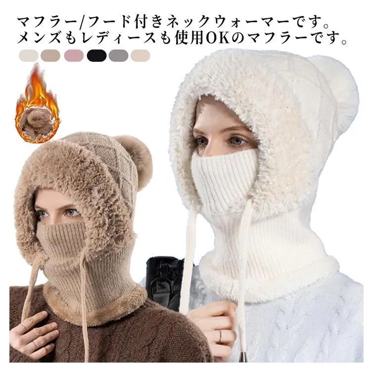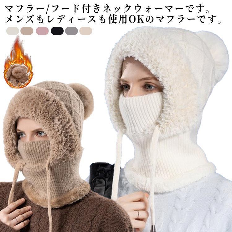 フードウォーマー フードウォーマー フード付きネックウォーマー 防寒 暖かい 厚手 耳当て 秋冬 ふわふわ マフラー ボア スノボ 耳あて付き帽子 冬用 スヌード フェイスカバー フードウォーマー ス#conne564974
