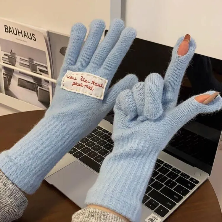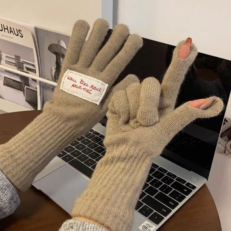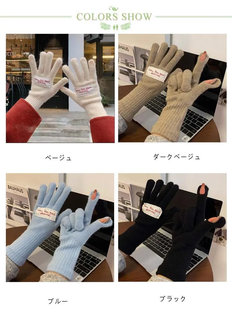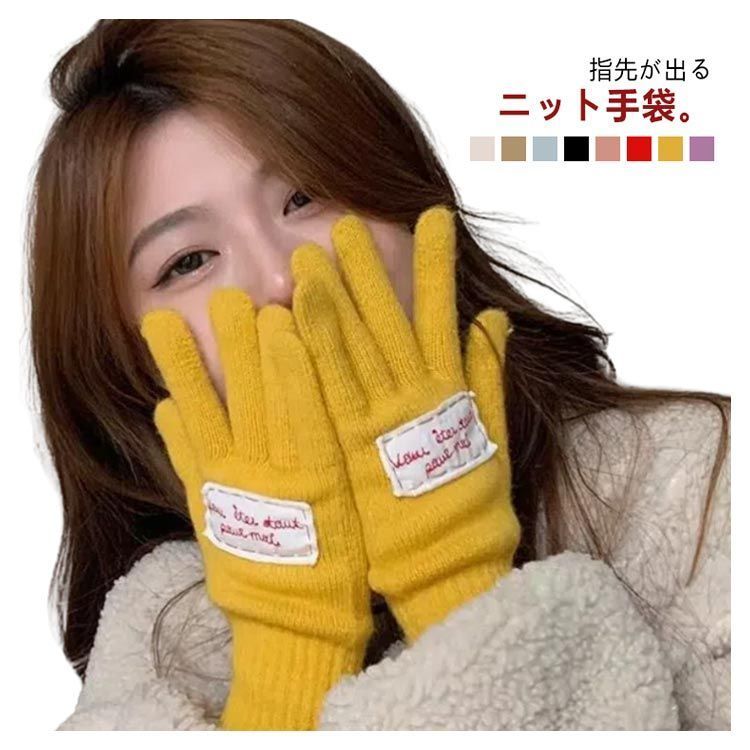 暖かい 手荒れ 指先スリット レディース ニット手袋 五本指 指出し ハンドウォーマー あったか 秋冬 スマホ対応 グローブ 防寒対策 手荒れ 手ぶくろ シンプル 可愛い 指穴 きれいめ おしゃれ#cjfj139511