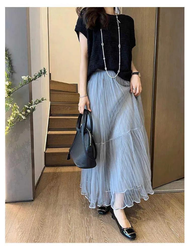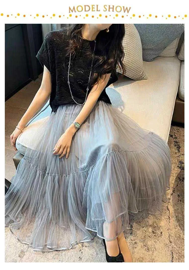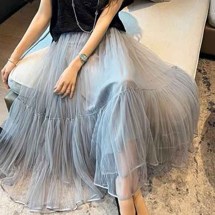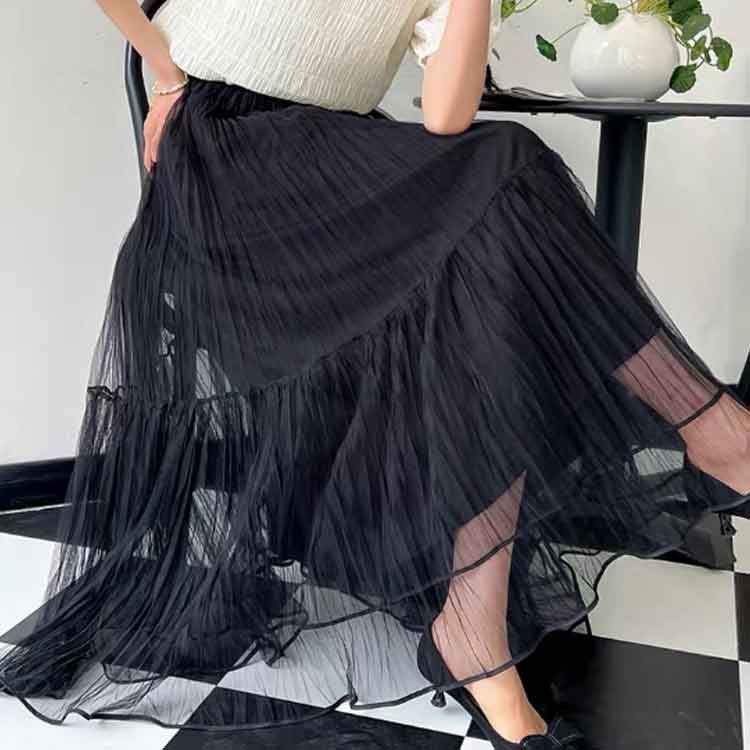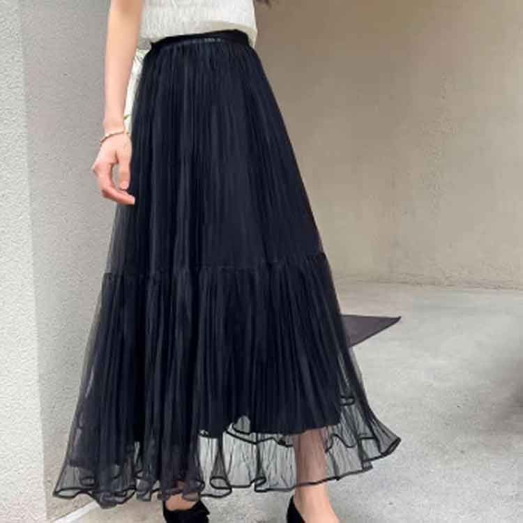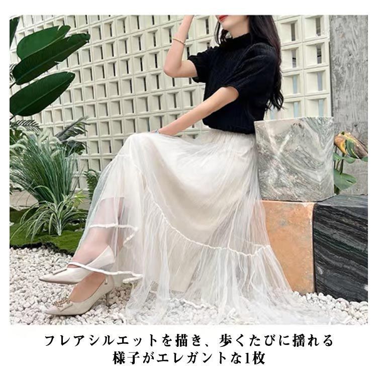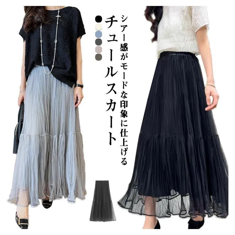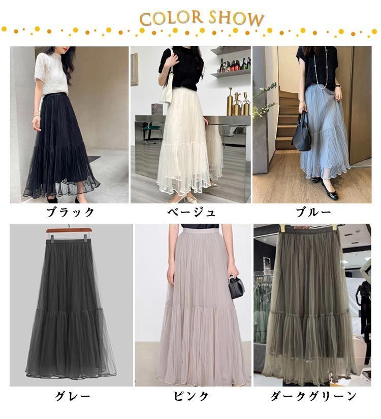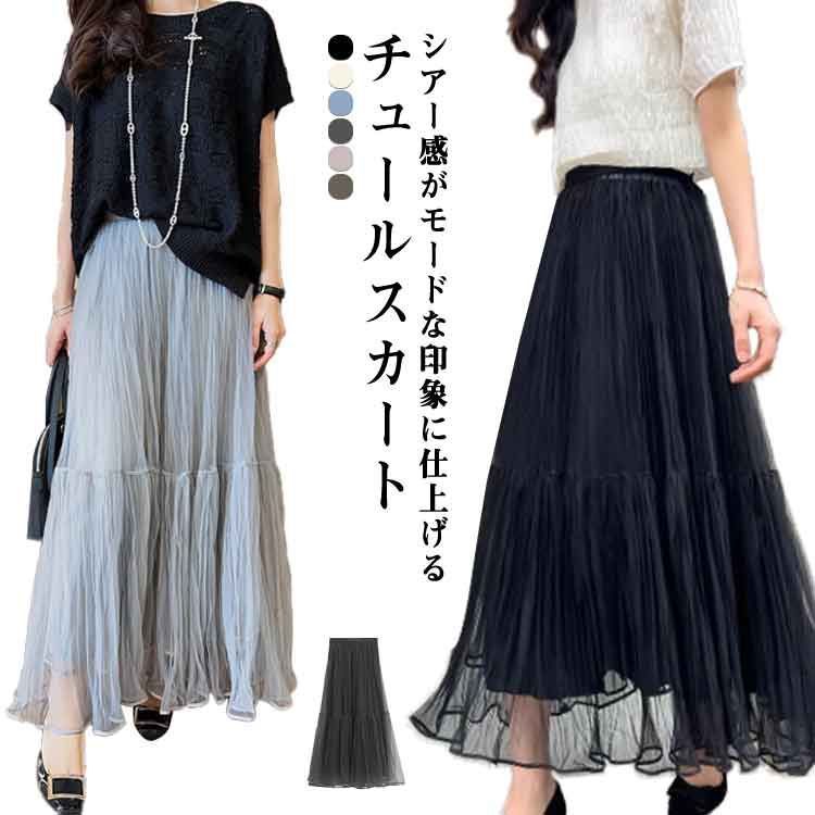 プリーツスカート ロング 春 スカート ロング丈 ロング ロングスカート フレアスカート 忘年会 秋冬 チュールスカート リバーシブル ボリューム 透け感 フェミニン 大人 レディース フレア プリ#cjfj139502