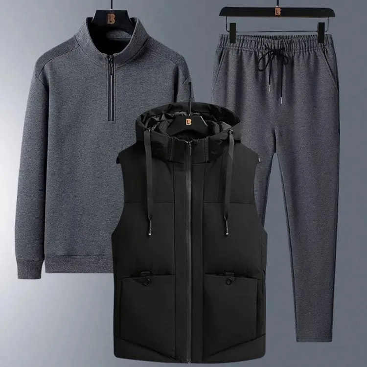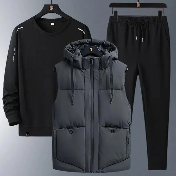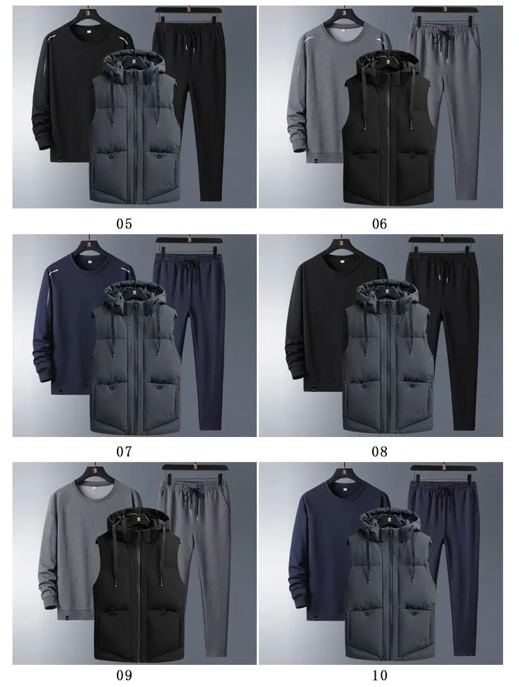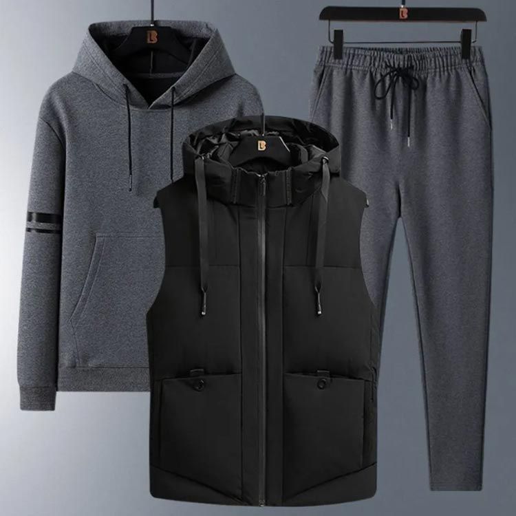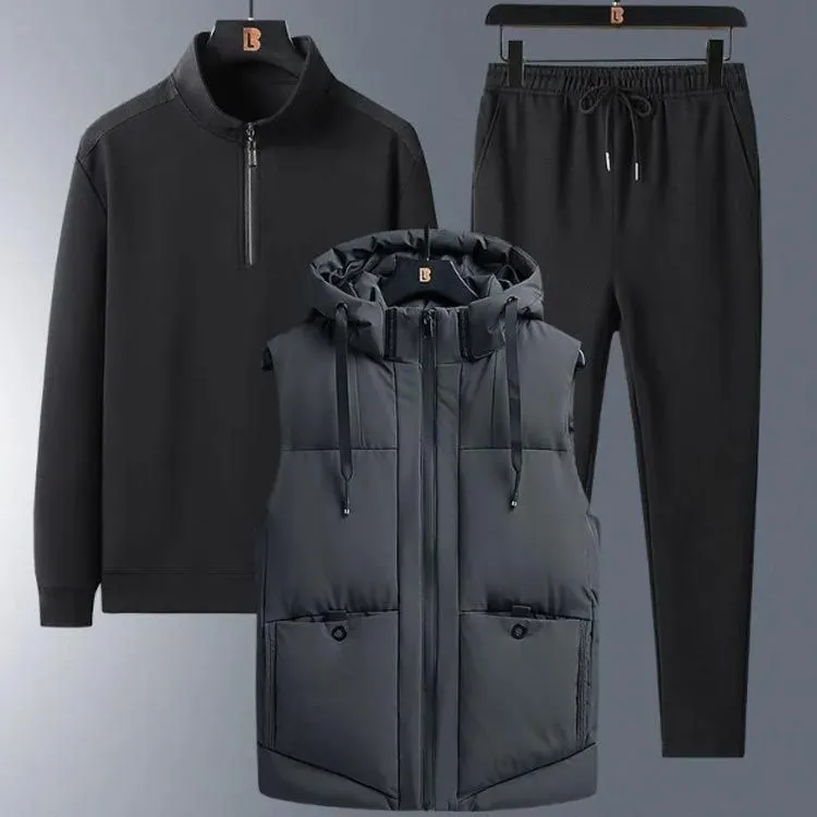 長袖 パーカー 部屋着 3点セット プルオーバー ジップアップ 冬服 スウェット 冬 カジュアル 裏起毛 上下セット 中綿ベスト 防寒 メンズ 暖かい フード付き ルームウェア 普段着 セットアップ#cjfj136933