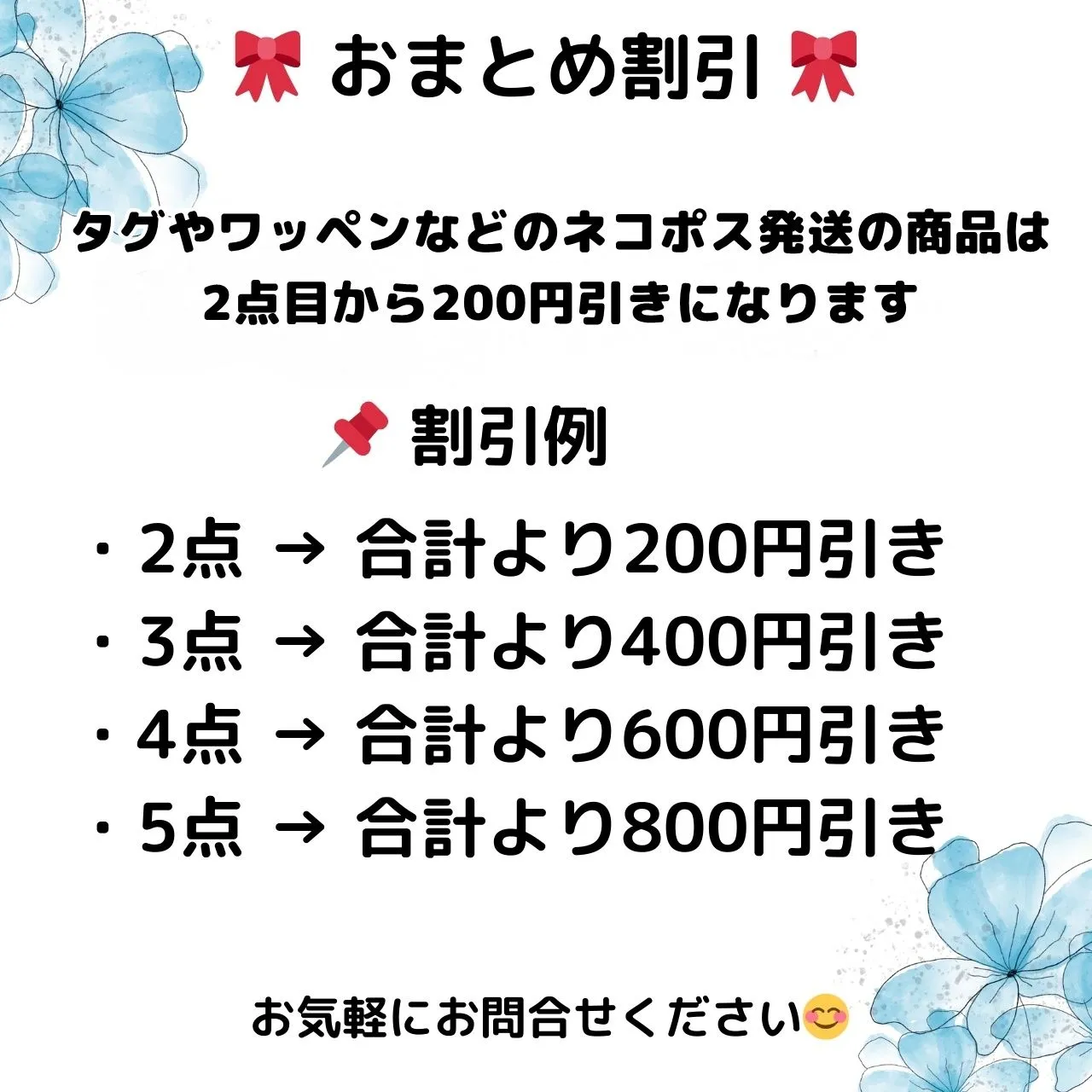 ワッペン・タグなどのネコポス発送の商品は、2点目から200円引きさせていただきます。