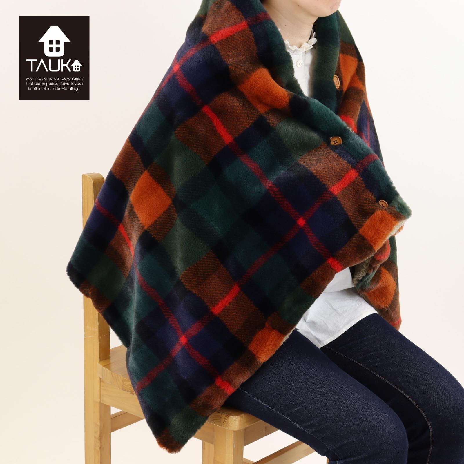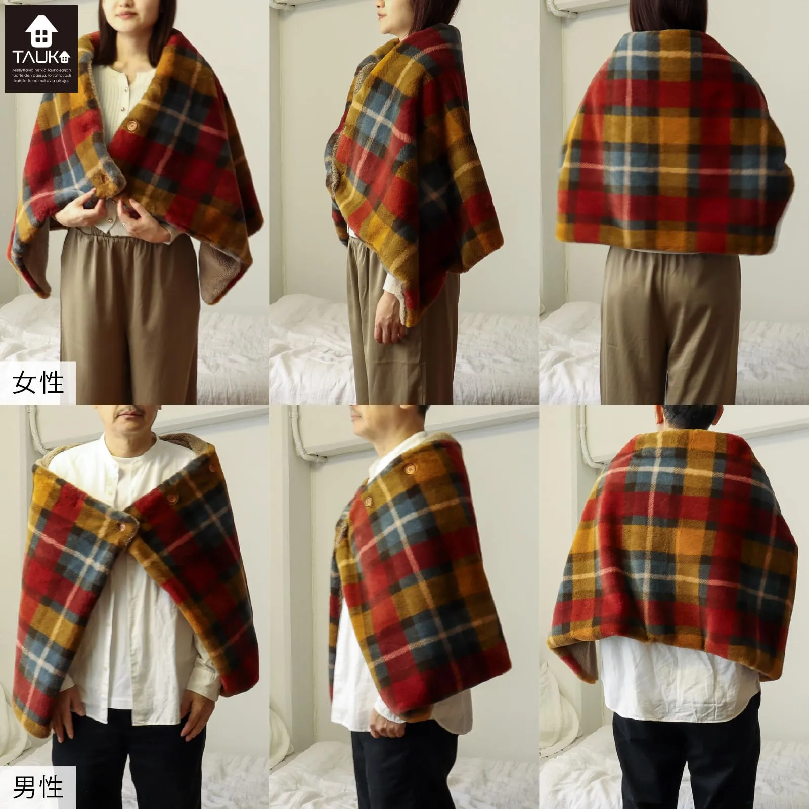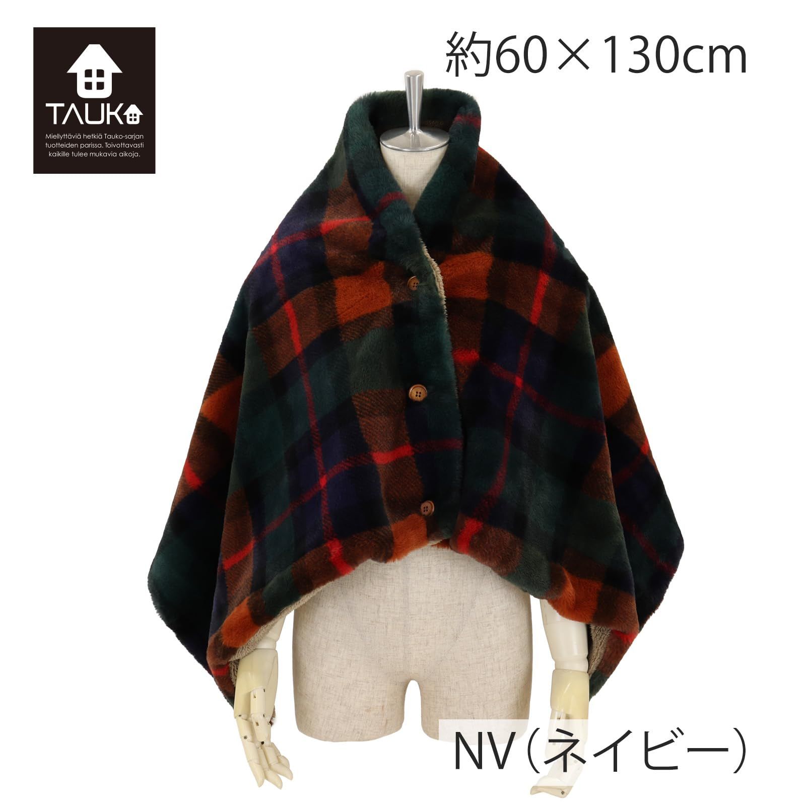 【サイズ】60×130サイズ ボタンが付いているので留め方次第で肩から羽織ってポンチョにしたり、巻スカートにしたり、ひざ掛けにしたりとさまざまな着こなしが楽しめます