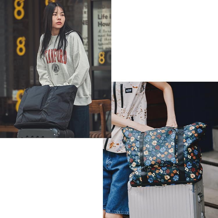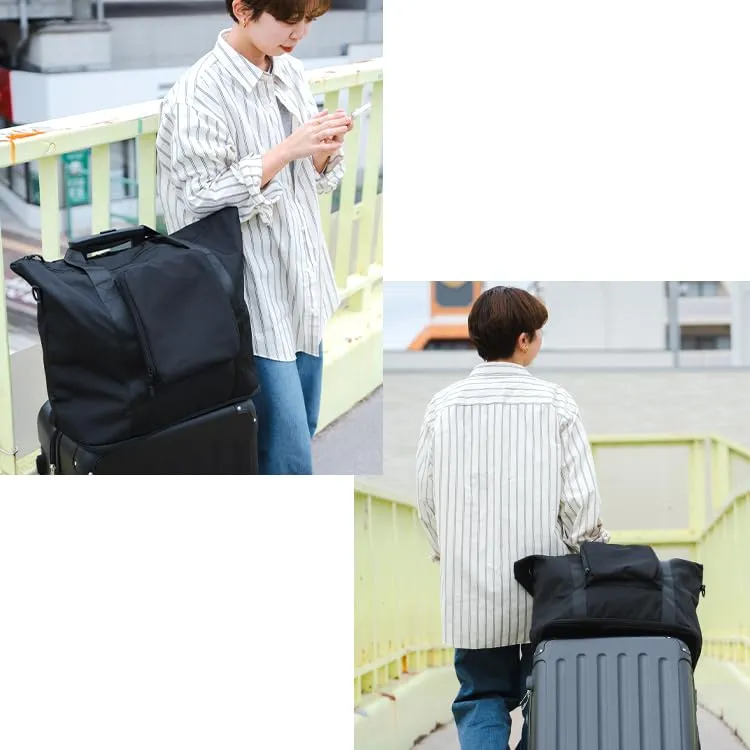 ●キャリーケースの上に載せられる大容量トートバッグ。