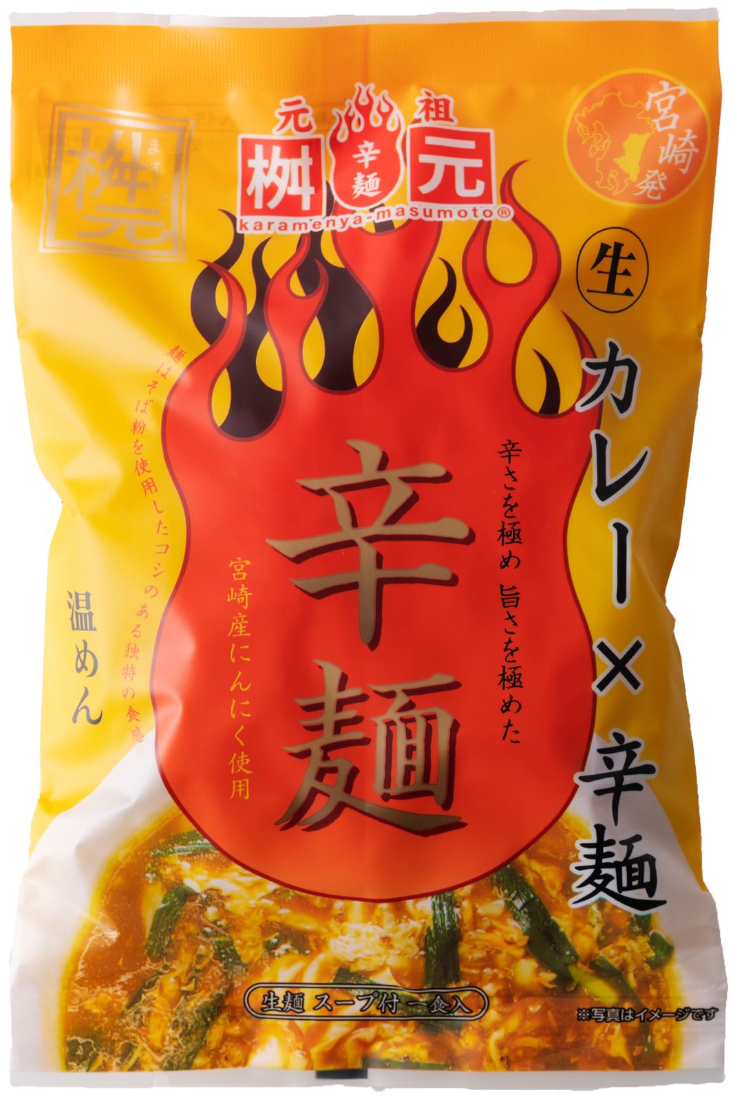 元祖桝本 辛麺 カレー辛麺 カレー味 単品 温めん 生麺 5袋セット 【Curry Spicy Noodles (5Pack)】