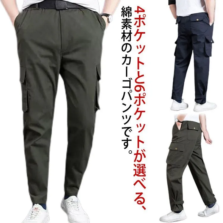 4ポケットと6ポケットが選べる、綿素材のカーゴパンツです。