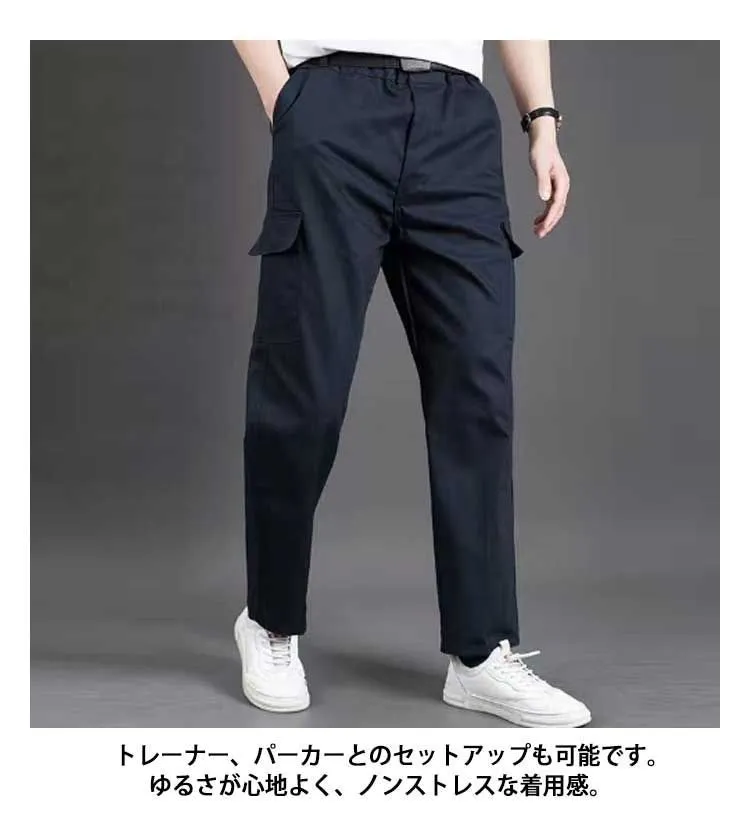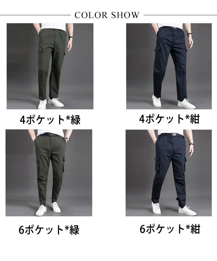 綿 カーゴパンツ メンズ スリム 秋 冬 ワークパンツ ストレートパンツ 作業着 作業ズボン カジュアルパンツ ロングパンツ 長ズボン ボトムス カジュアル ポケット 汚れ防止 グリーン ネイビー M#fdc1966