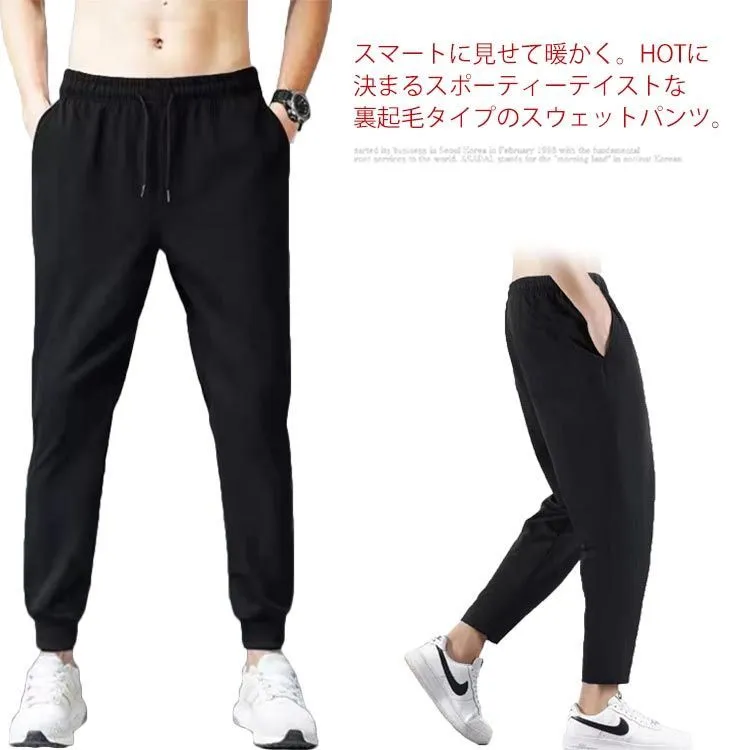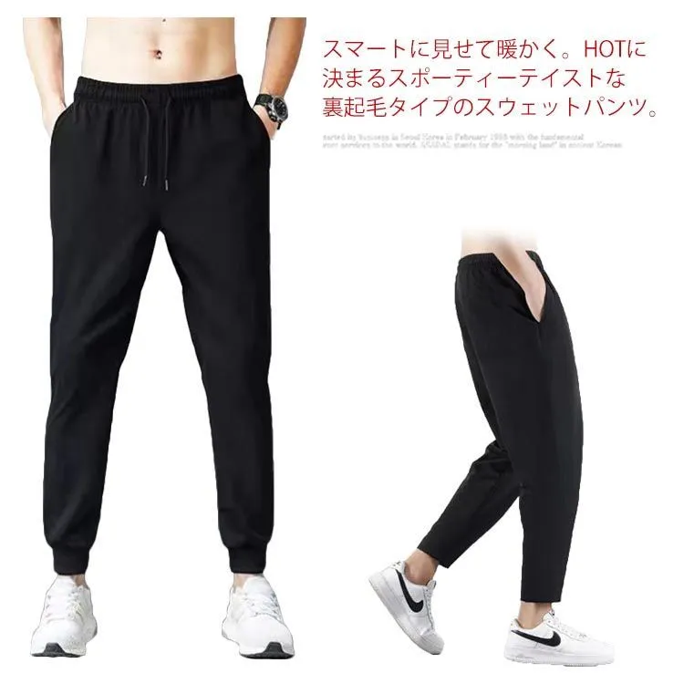 スマートに見せて暖かく。HOTに決まるスポーティーテイストな裏起毛タイプのスウェットパンツ。