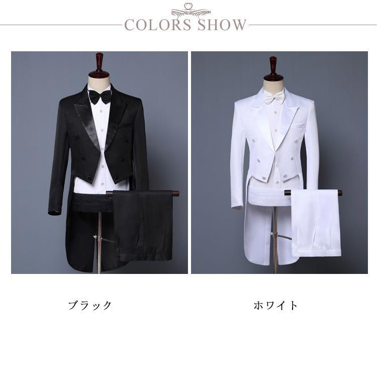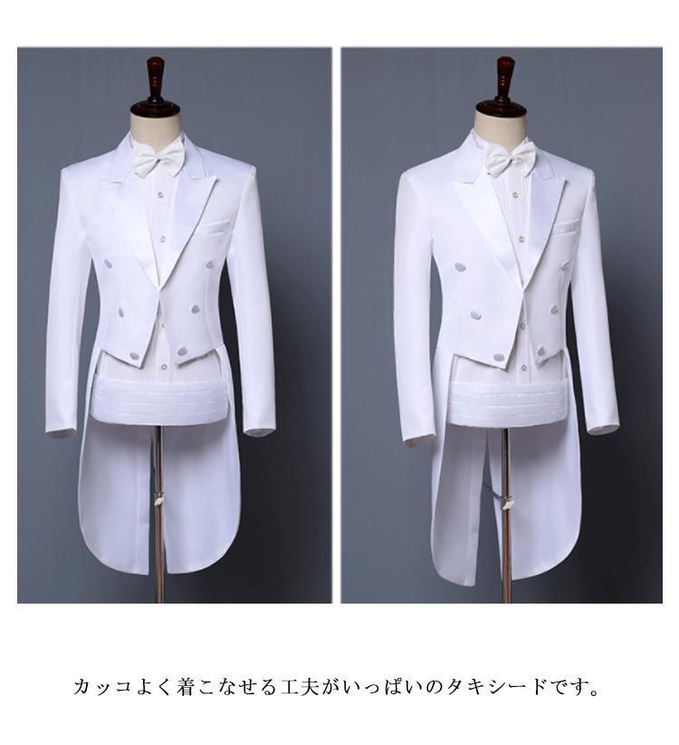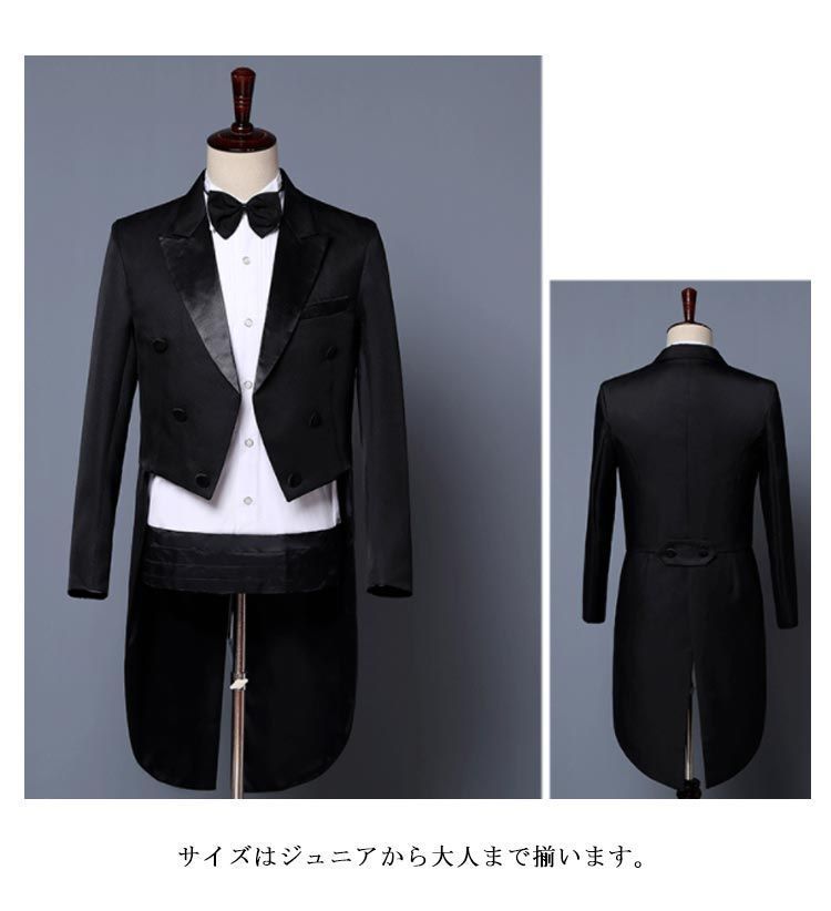 スーツ メンズ タキシード 4点セット ジュニア フォーマル 礼服 紳士服 春秋冬 燕尾ジャケット スラックス カマーバンド 蝶ネクタイ パーティー 発表会 演奏会 新郎 ゲスト お父様 司会者 舞台#lss6037
