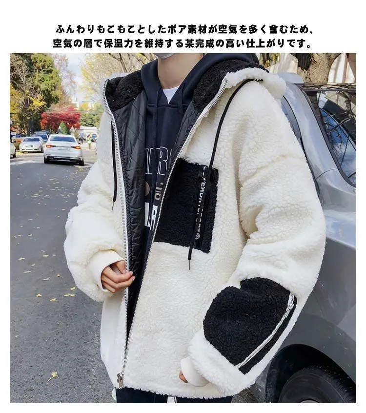 ボアジャケット メンズ 厚手 もこもこ ボア アウター 中綿ジャケット ボアブルゾン ボアコート フリースジャケット コート ジャケット ボア ブルゾンコート 暖かい 防寒コート ふわふわ ゆったり #mjx4644