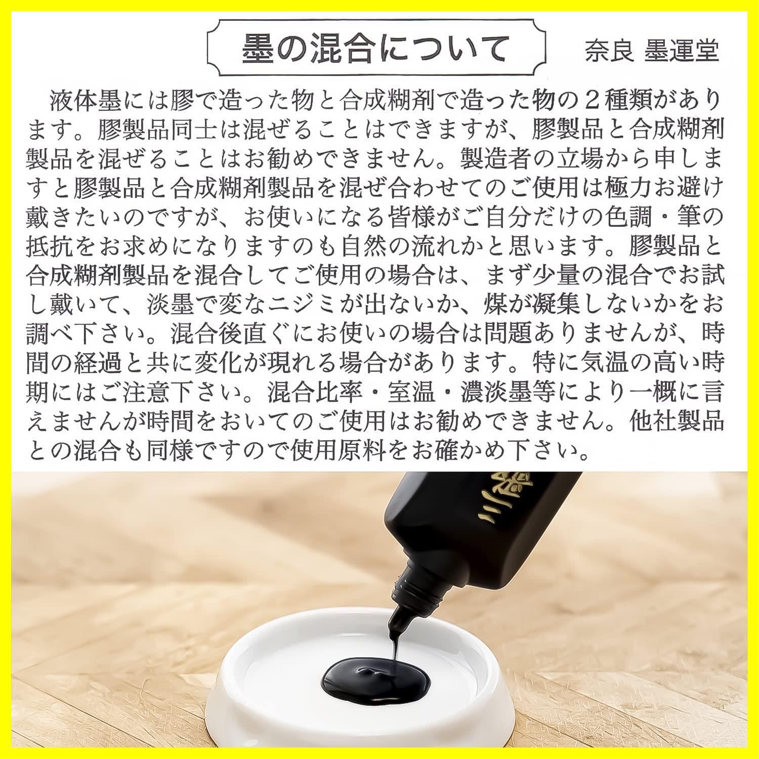 高級固形墨と同じ純植物性油煙を原料として、小筆に適した書きやすい液体墨。