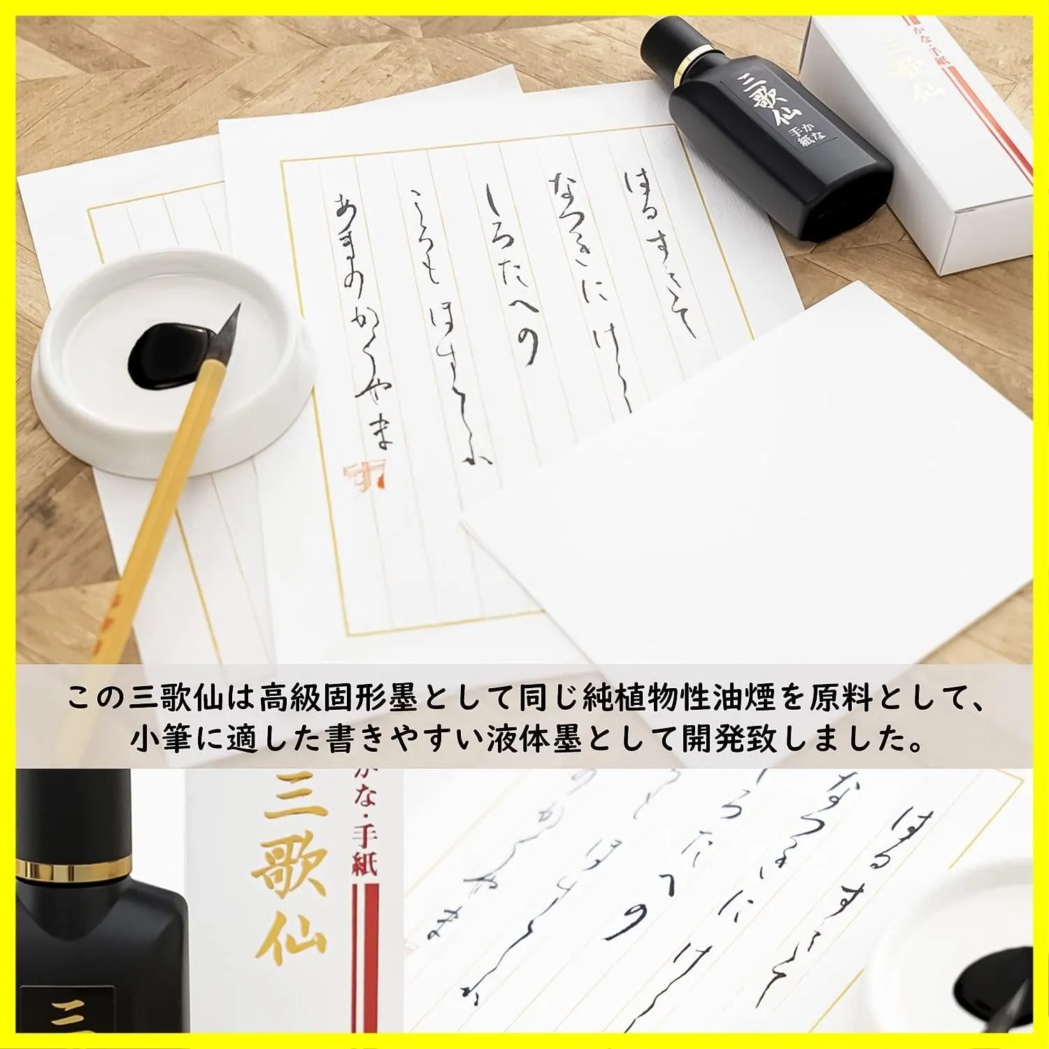 三歌仙 高級固形墨と同じ植物性油煙を原料として、小筆に適した書きやすいよう開発された液体墨