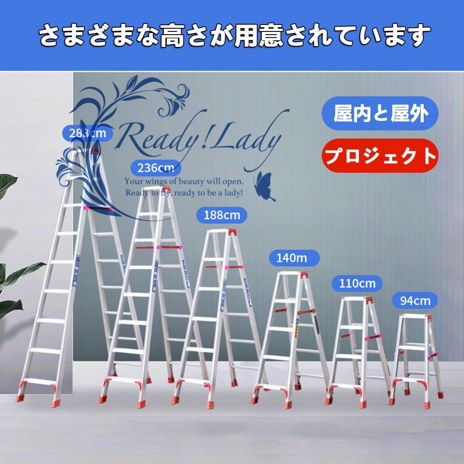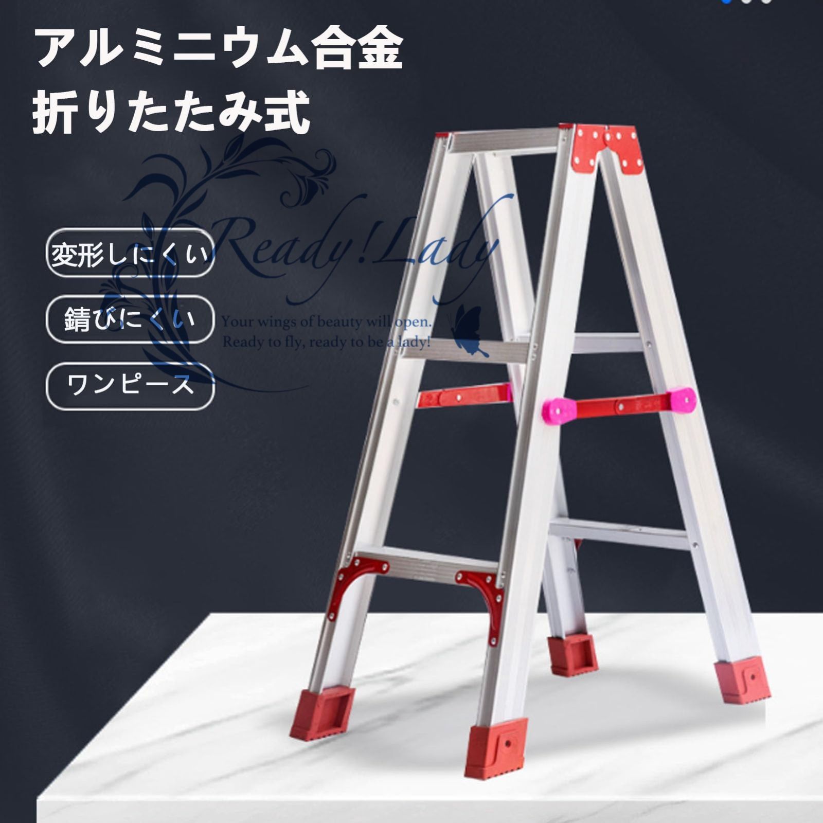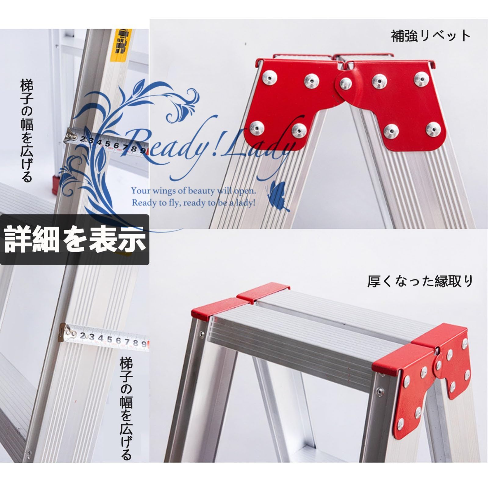 【高品質】すべては厚みのあるアルミニウム合金で作られており、強力な構造、強力な耐荷重能力、錆びにくく、変形しにくく、長寿命、ジョイントはリベットで強化されており、底部には馬蹄形の脚が強化されています。はしご本体のサポートロッドを強化しているので、安心してご使用いただけます