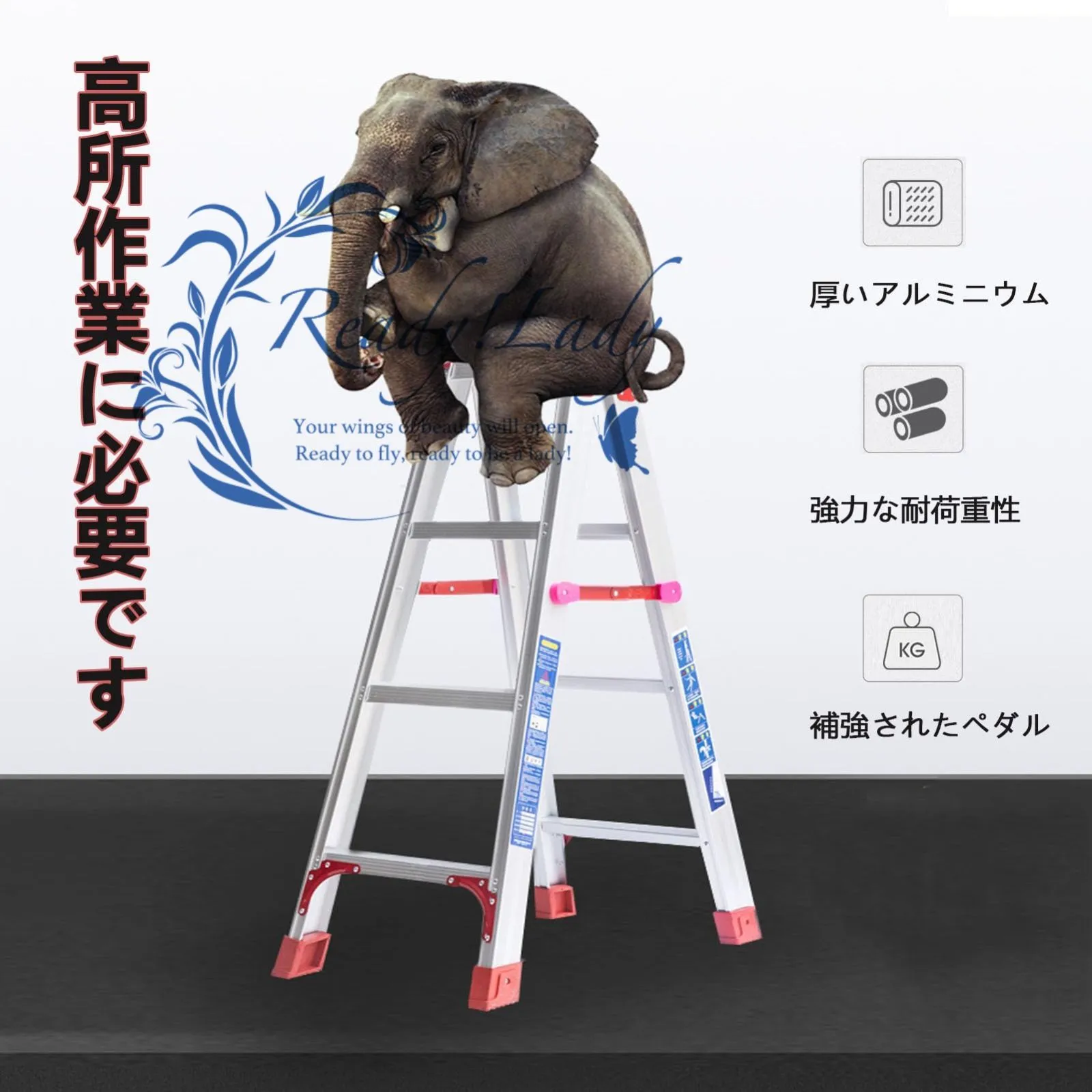 【ワイドステップデザイン】6cm広くて厚みのあるペダル、より快適に安心して作業できます、はしご本体はすべて幅広になっており、使用がより安定し、足の安定性が確保され、より安全になります
