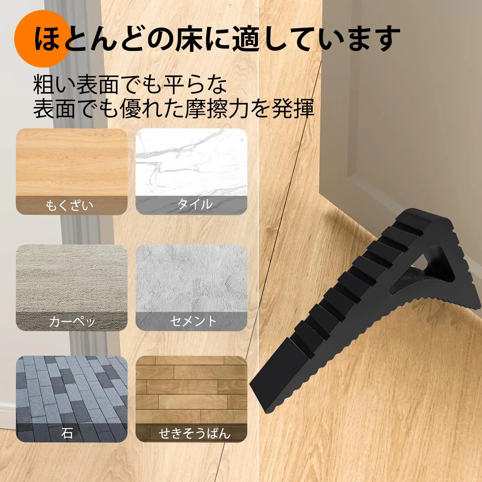 【良質な材質】ドアくさびはゴムでできており、これらのドアストッパーは硬い木を保護し、傷やくぼみから床を強化するのに役立ち、耐久性と変形に強く、地面をよくつかんで最適な摩擦力を提供することができます。ドアストッパーは移動せず、ドアを安定させます。それも非常に安全です。傾斜した表面はドアが自ら閉まるのを防ぐので、強風の中でドアが閉まるのに驚く心配はありません。