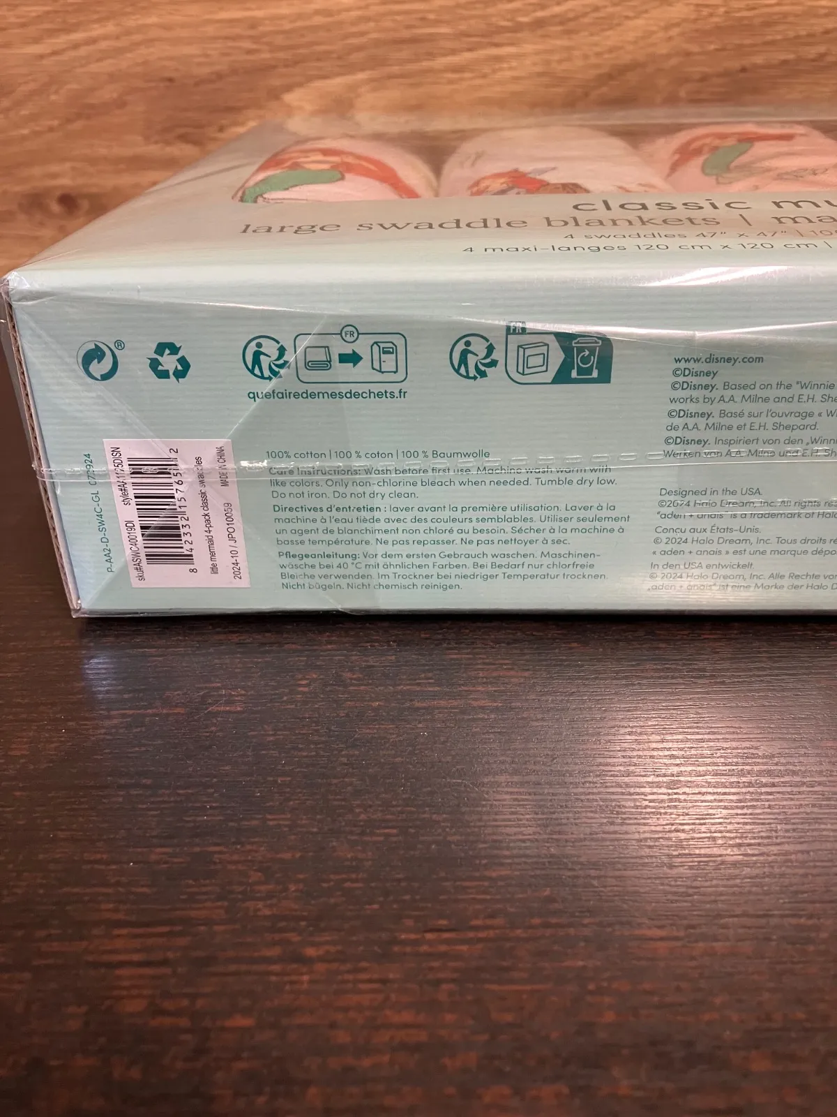 新品 箱入り!エイデンアンドアネイ Aden+Anais ディズニー アリエル 箱付き 4枚セット