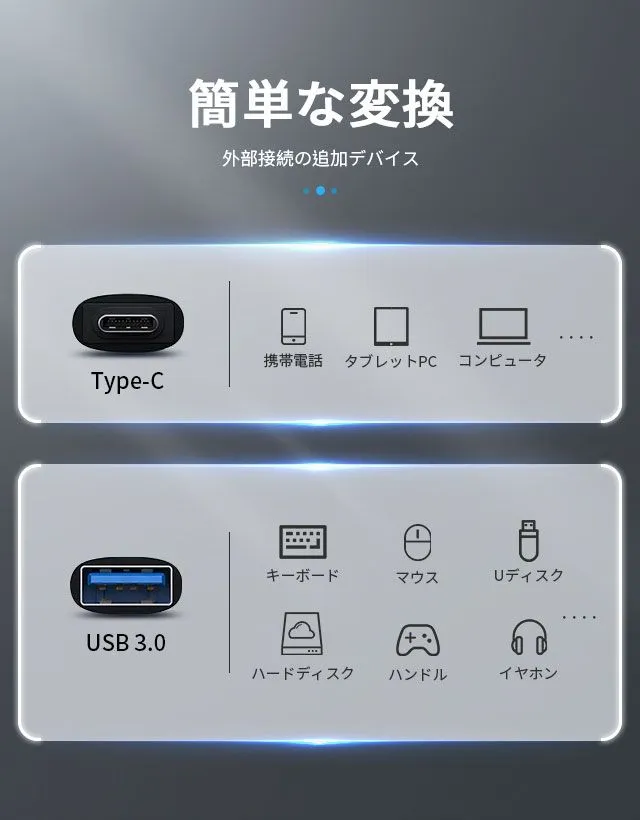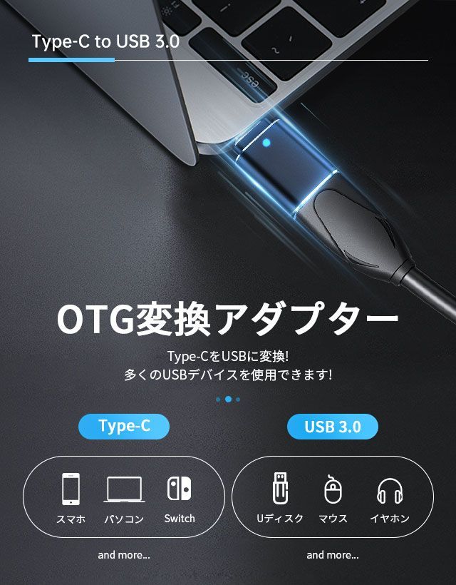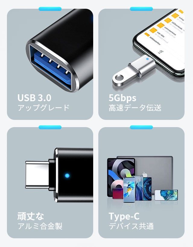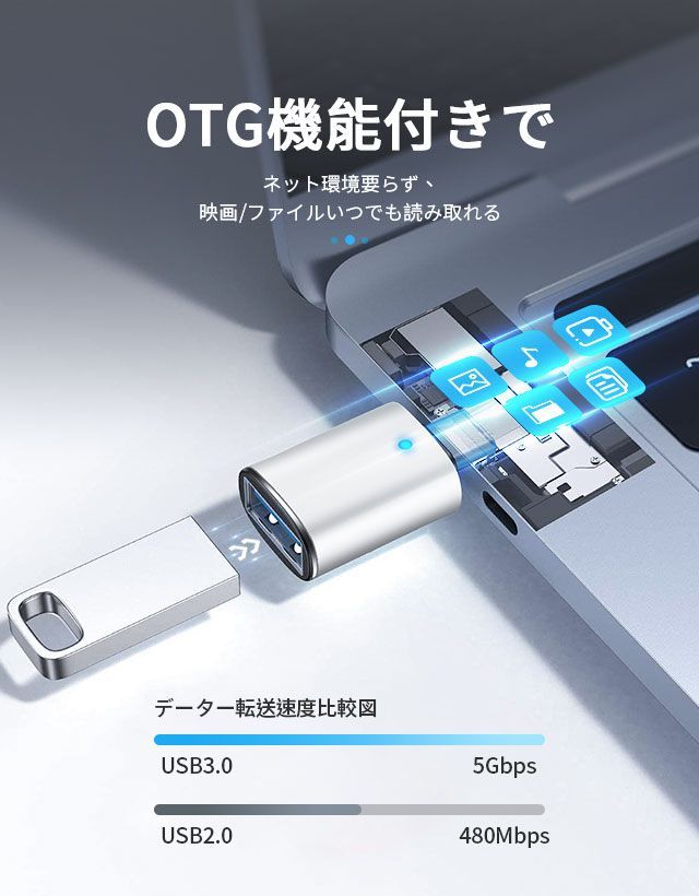 USB-A Type-C 変換アダプター USB 3.0 変換 アダプタ OTG機能 対応し USBメモリ キーボード アプリ不要 大容量の映画 オーディオ 最大5Gbps データ転送できます KBC