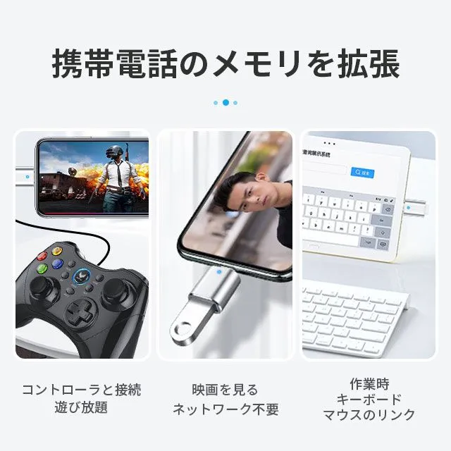 OTG機能搭載、外付けHDD、USBメモリ、マウス、キーボード、ゲームコントロール、