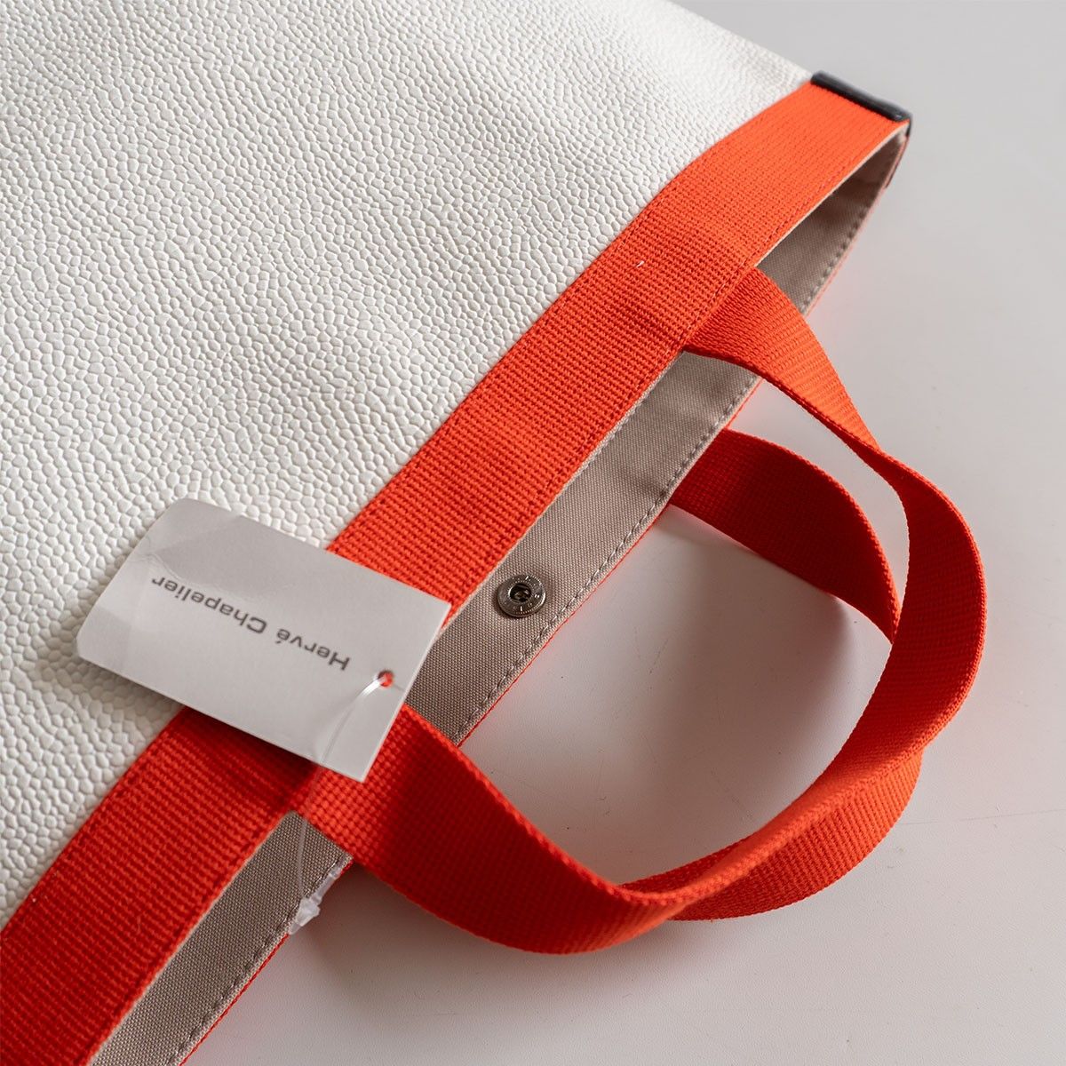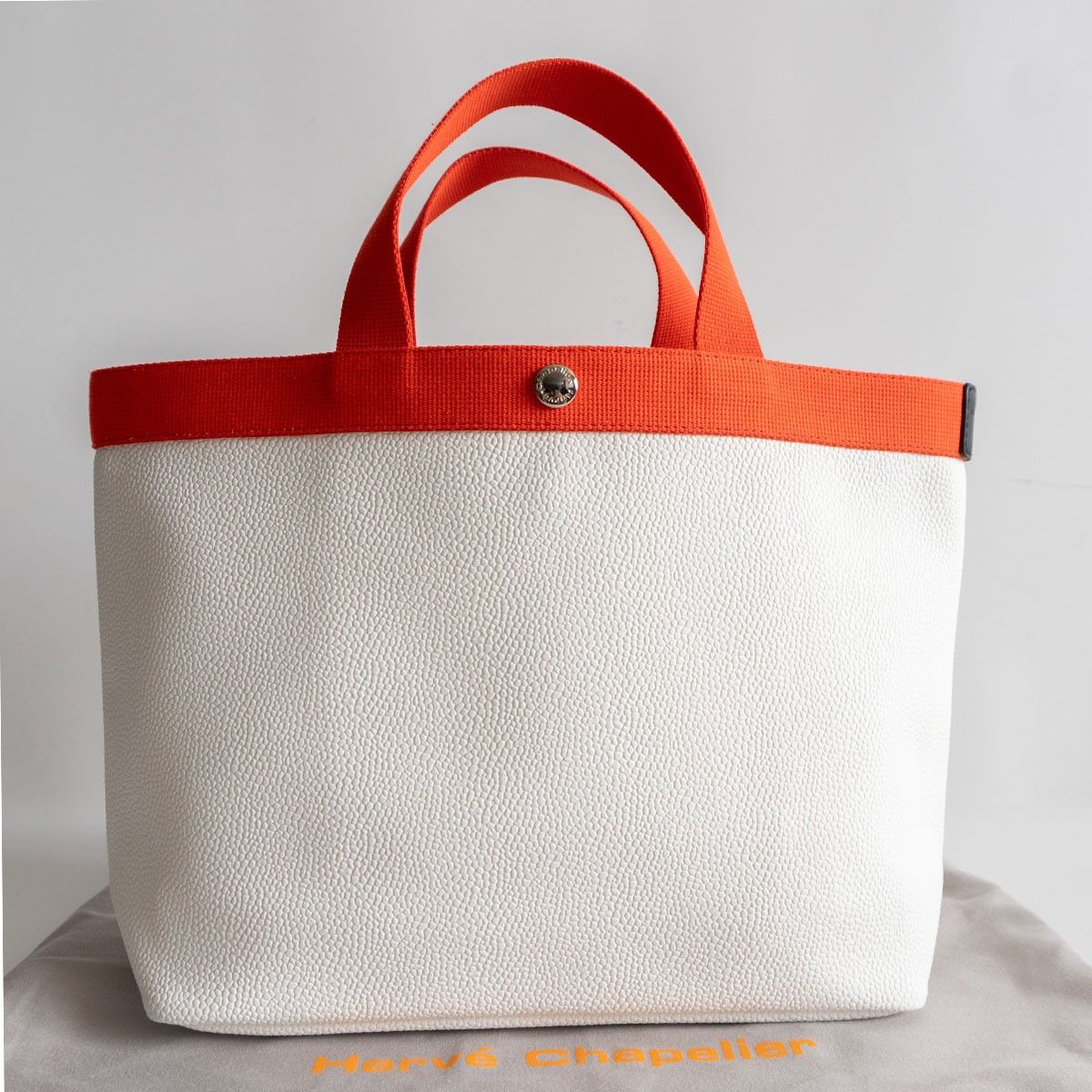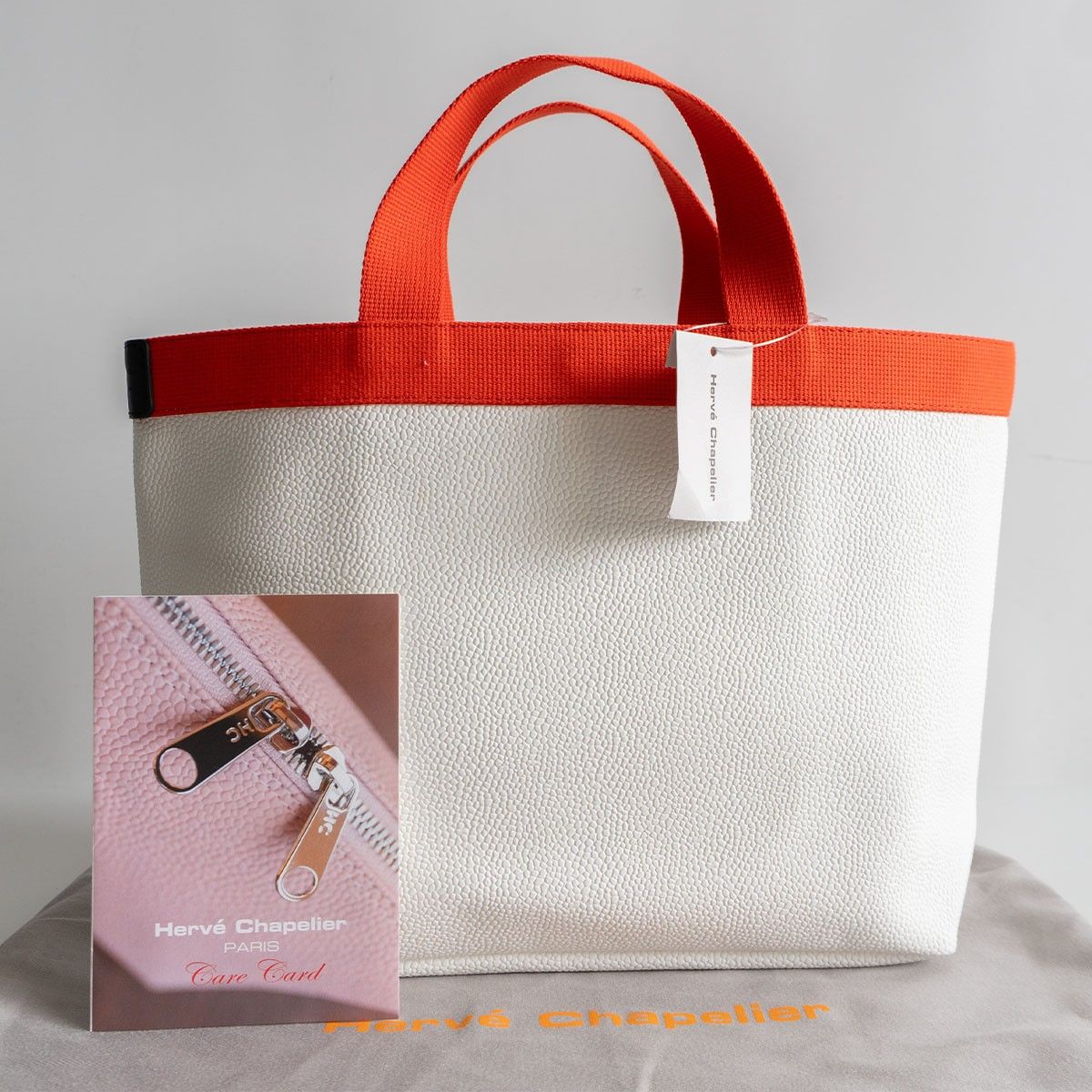 【未使用品】 Herve Chapelier【704GP/リュクス コーテッドキャンバス 舟形 トート バッグ】ホワイト×オレンジ エルベシャプリエ 25120444