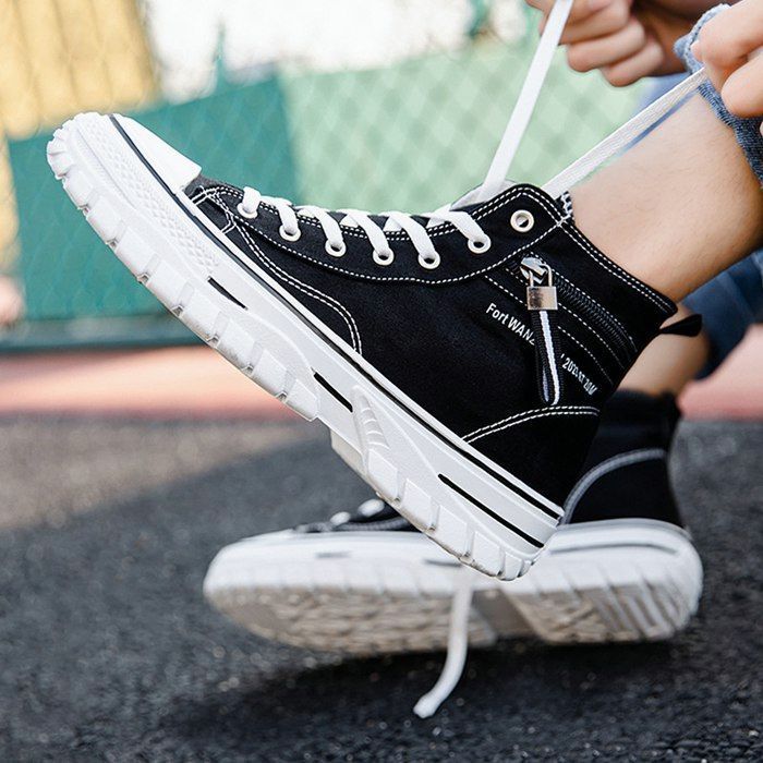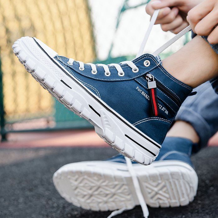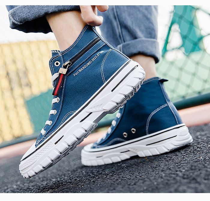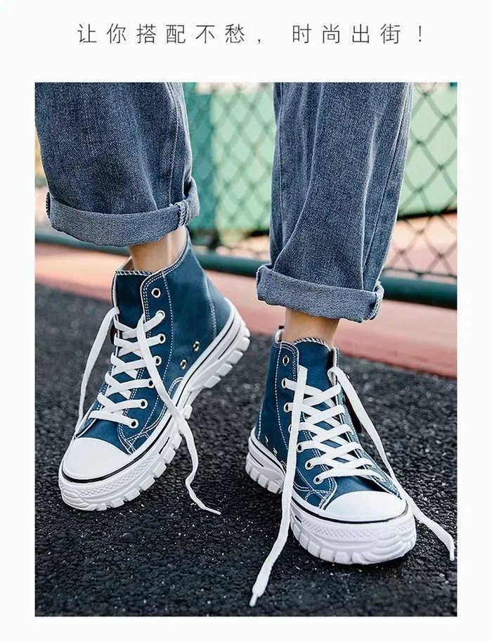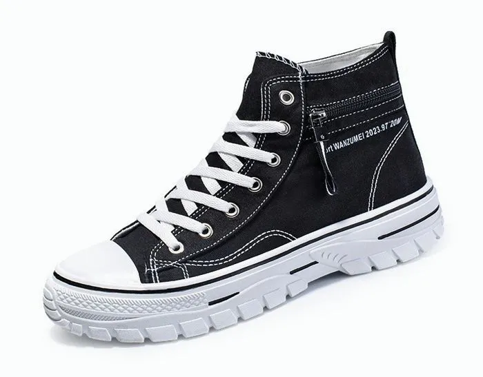 靴 キャンバス スニーカー メンズ ハイカット レースアップ 厚底 歩きやすい カジュアルシューズ