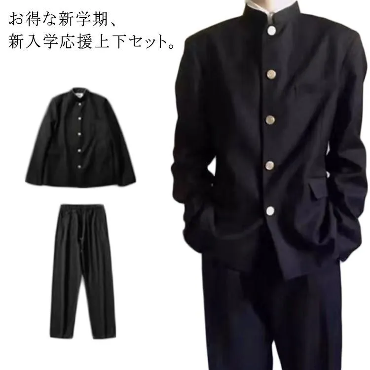 学ラン 上下セット 男子 男子高生 高校生 中学生 ボーイズ 学生服 制服 スクール ジャケット スラックス 上着 ズボン ラウンド襟 詰襟 入学式 卒業式 通学 文化祭 学園祭 コスプレ