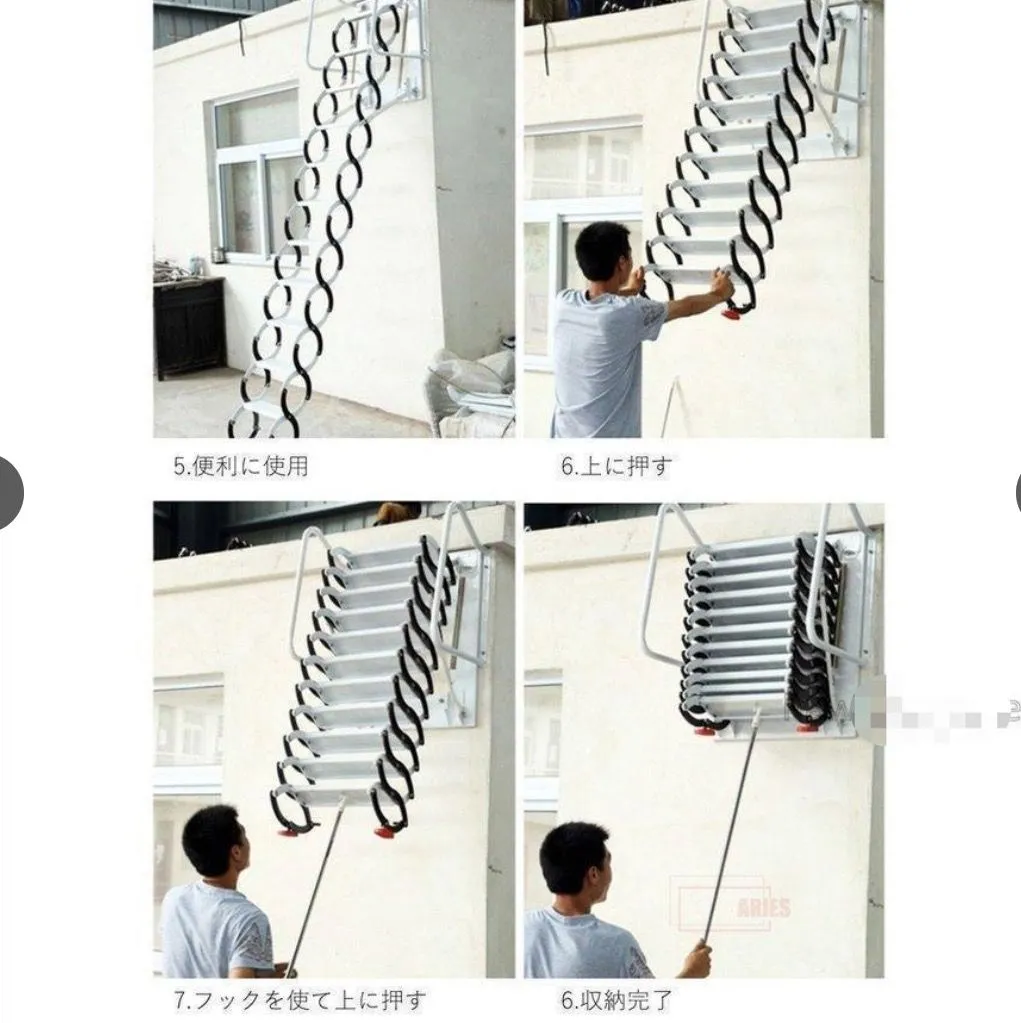 大好評☆金属階段 ステップ 鋼 頑丈 はしこ 壁掛けタイプ 折り畳み可能 階段 登り 室内 室外 便利 丈夫 ロフト 2階 頑丈 伸縮タイプ 伸縮 複式用