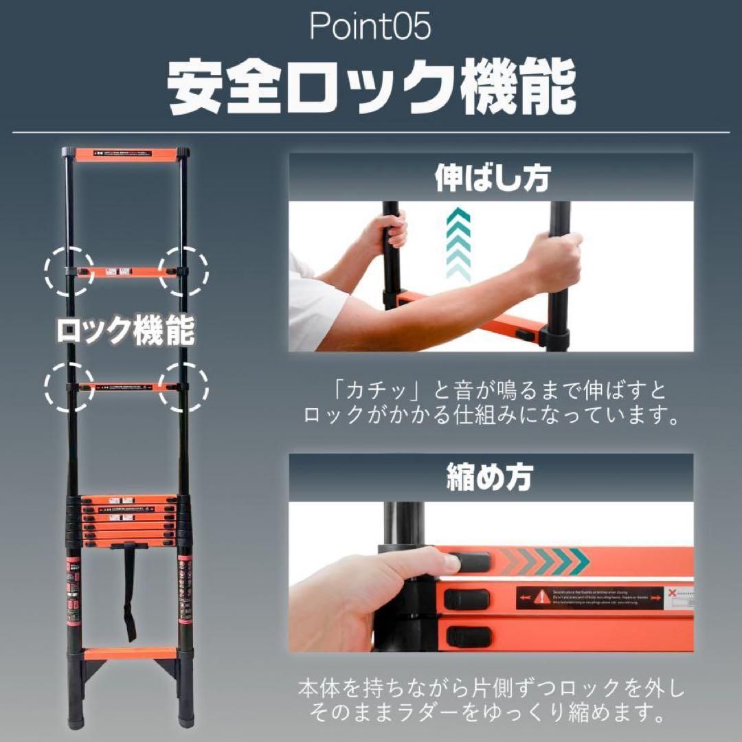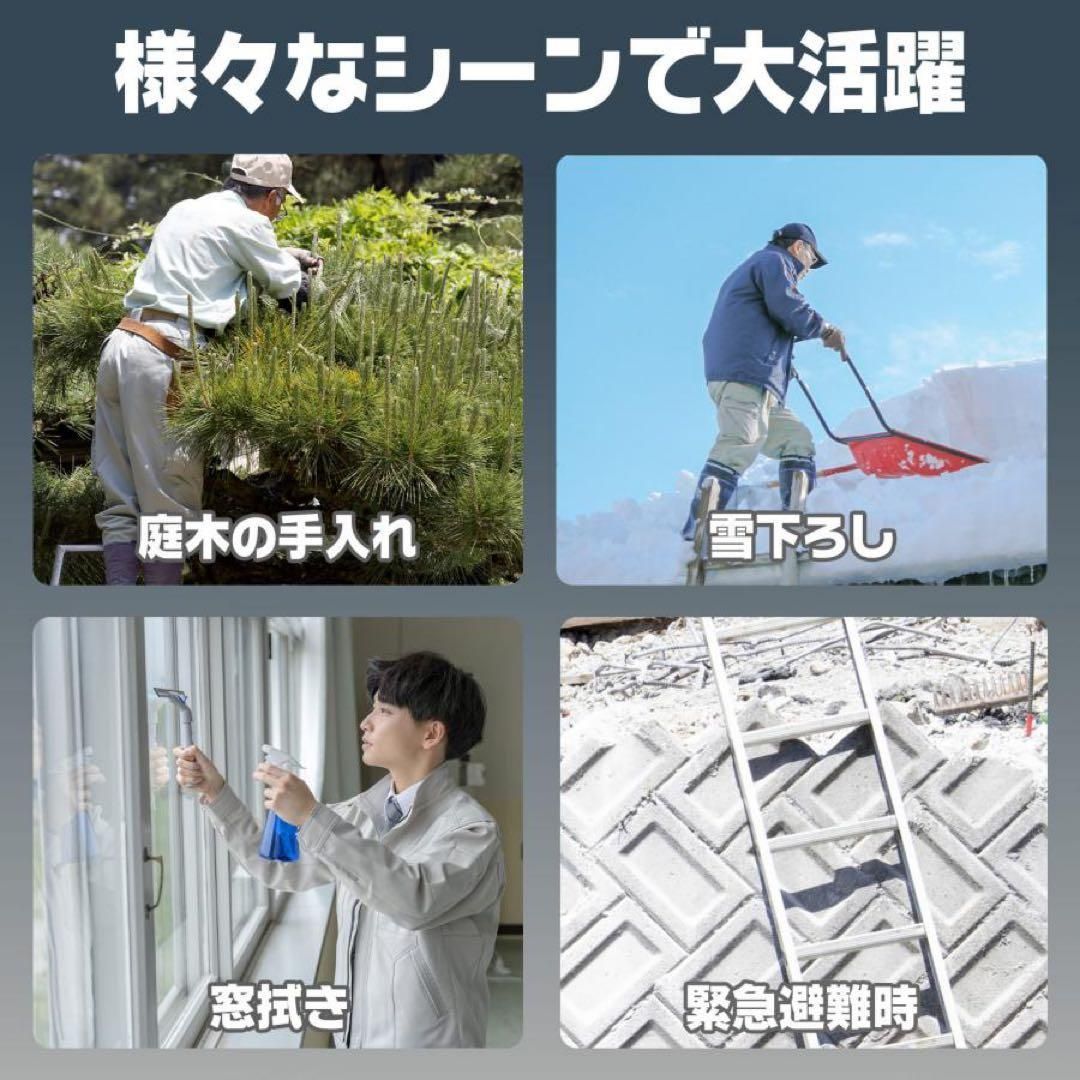 ◆北海道、沖縄、離島への配送は別途郵送料がかかります。対象の方はコメント欄にコメントをお願いします。 伸縮はしご 梯子 はしご ハシゴ 伸縮 折り畳み 伸びる ラダー コンパクト 持ち運び 軽量 屋根用 高所作業耐荷重150kg 伸縮梯子 スーパーラダー スライド式 安全ロック 雪おろし 雪下ろし 大掃除 ガーデニング 爆買 高耐久なスチール製で、約150kgの耐荷重を誇る頑丈なつくり。 重量物の取り扱いやプロの現場でも安心して使用できます。 使わないときはコンパクトに折りたたんで収納でき、玄関や物置はもちろん、車に積んでの持ち運びにも便利です。 防滑ステップには滑り止め効果のある凹凸構造を採用し、底部グリップも地面をしっかり支える滑り止め設計。 さらに、人間工学に基づいて設計された持ち手ハンドルで持ち運びも快適です。 ラダー部分には安全ロック機能を搭載しており、伸ばすと“カチッ”という音とともにしっかり固定され、安全性を高めています。 屋外作業や現場作業に最適な、実用性と安全性を兼ね備えたアイテムです。