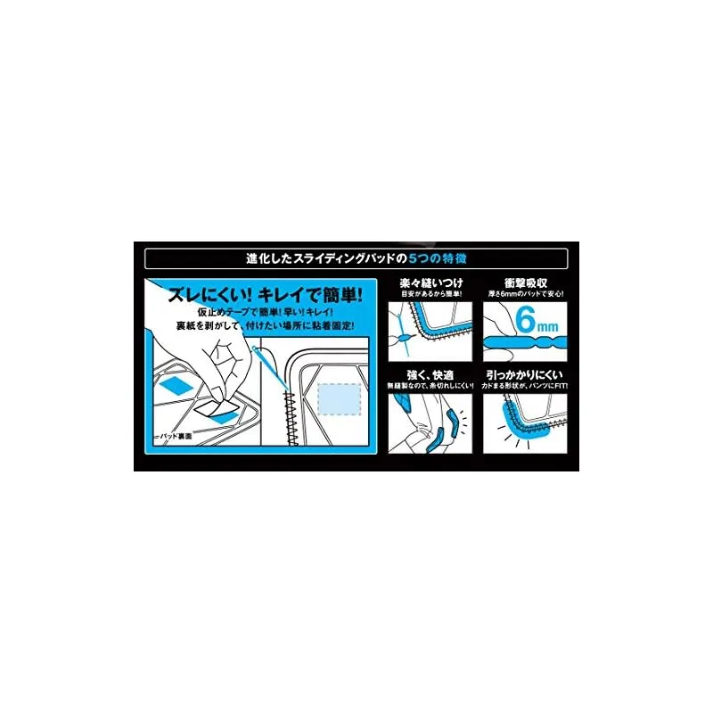 【商品説明】 早く、簡単に、きれいに。 従来の縫付けパッドが進化する。 最大の特徴は、縫い付け易さを実現した特殊開発の仮止めテープ。 縫付け易さにこだわったパッドは、耐久性も保持する。 2014年新登場。
