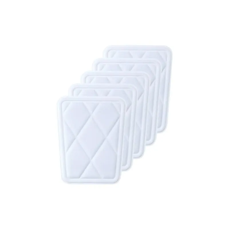 【商品概要】 原産国:台湾 素材:表生地/ポリエステル100%、詰め物/ポリウレタン100%、裏生地/ポリエステル100% サイズ:17.5×上部14(下部11.5)×0.6cm 容量:5枚入り
