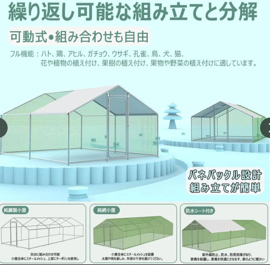 【様々なシーンに最適・多目的】この鶏小屋は、鶏、アヒル、ガチョウ、ウ 注: 1. 150*200*200cm 2. 200*200*200cm 3. 200*300*200cm このリンクの価格は150*200*200cmの製品のものです。他のサイズの製品をご注文の前に、必ず店主にお問い合わせください。ありがとうございます。