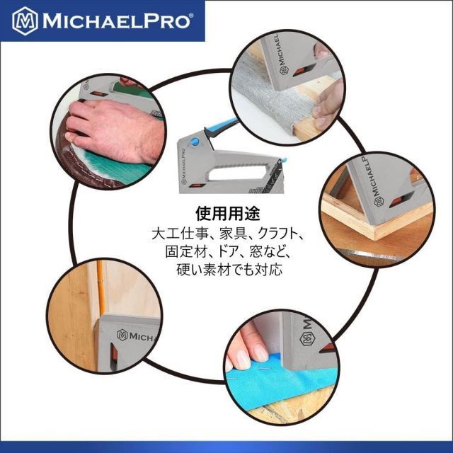【使いやすさ】 クイックリリースラッチを引いて、必要なタイプのホッチキスを差し込むだけで準備完了です!当社のステープルガンは、ホッチキスが詰まるのを防ぐ特許取得済みのメカニズムを備えています。ハンドルには安全ロック機構も付いており、保管中にスペースを節約します。