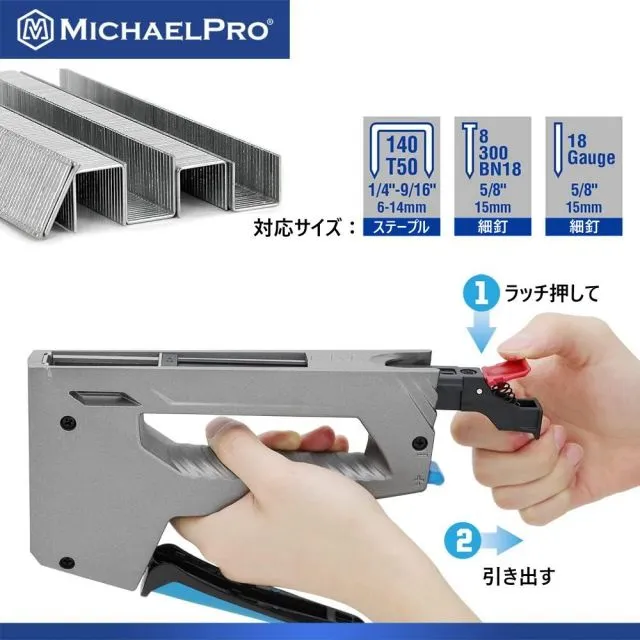 プロフェッショナル アルミニウムタッカー ステープルガン T50:6-14mm BN18:15mm マイケルプロ MP013011 工具 整備用品 メンテナンス 修理 DIY 自動車 軽自動車 大型車 自動車やバイクの整備に MichaelPro