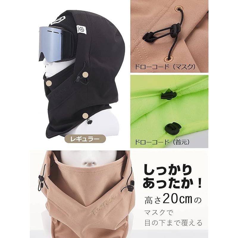 【選べる2サイズ】レギュラーとヘルメット用の2サイズ展開。レギュラーサイズは、直に装着した時にはぴったりすぎず程よいフィット感。フェイスカバーやニットキャップとのレイヤードにもぴったり!ヘルメットサイズはヘルメットの上からそのまま装着できるのが嬉しいポイント。