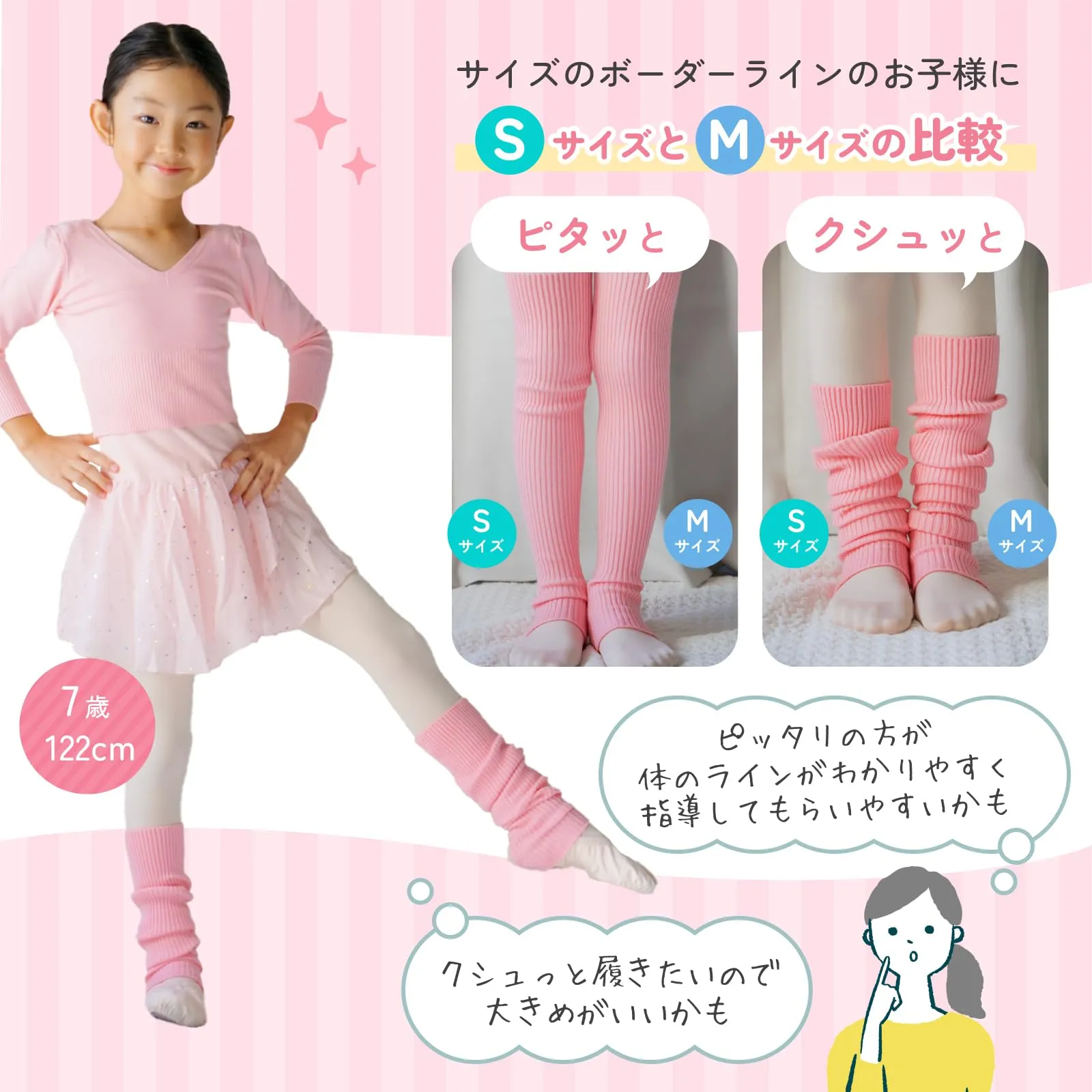 心地よい締め具合と、上質な肌触りのニットで足をスラっと演出します♪ニット特有のモサモサ感もなく、自宅でずっと着用しているスタッフ多数 伸縮性たっぷりでレッスン中にずれ落ちない!緩い編み方のニットでは動くたびにずれ落ちてレッスンを邪魔することもしばしば…当店のレッグウォーマーはバレエ・ダンス用なので足にぴたっとフィットし練習を邪魔しません♪ 万一の時も安心♪サイズ交換無料!バレエ経験者の日本人スタッフが迅速に対応します バレエ ダンス 新体操 普段の家履きに◎足首を温めてケガ防止にも最適です