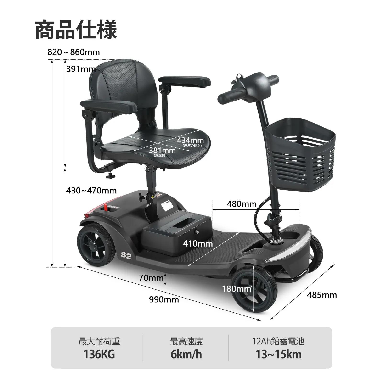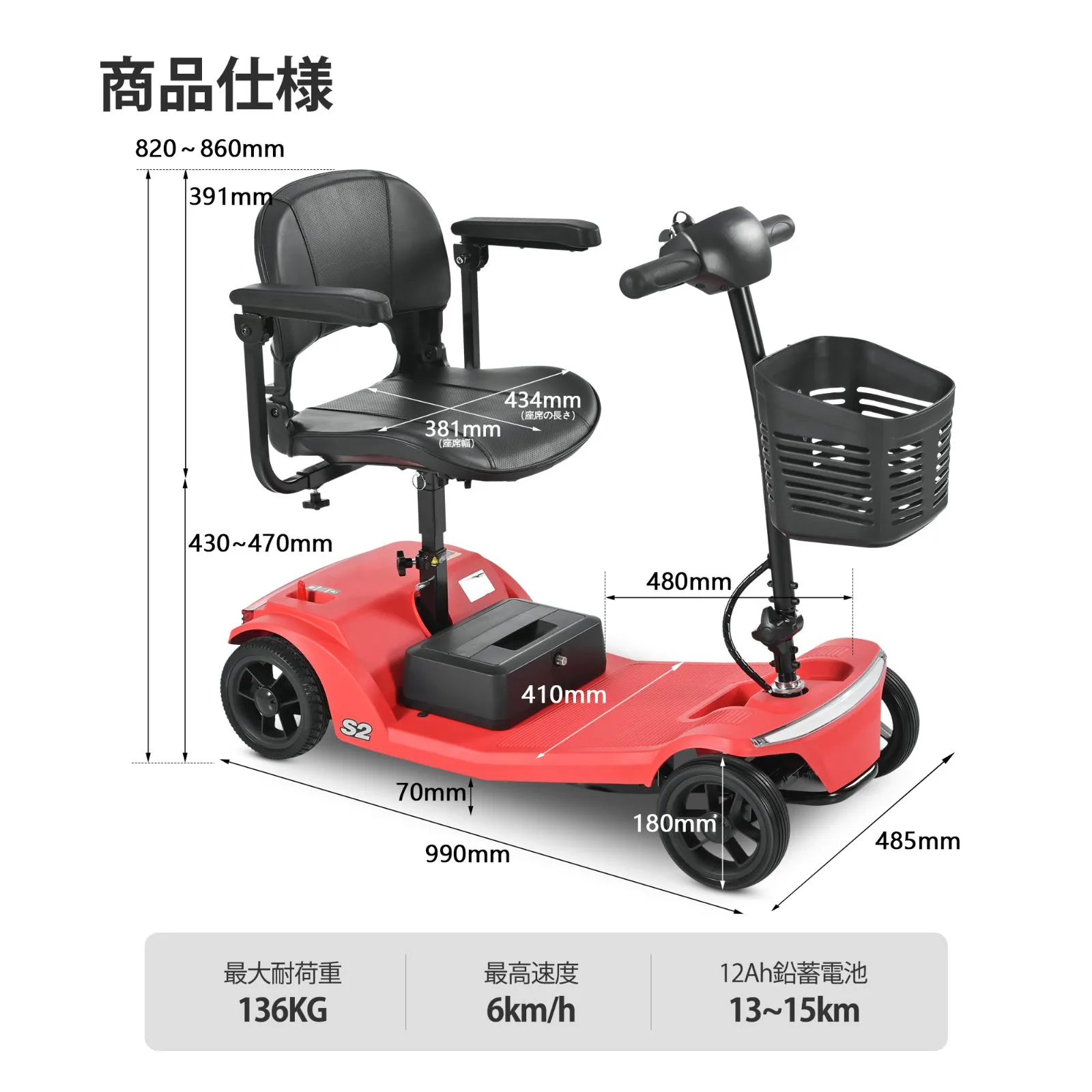 【免許不要】電動シニアカー 折 りたたみ 電動車椅子 電動カート ハンドル形電動 LEDライト シル バーカー 車椅子 電動車いす 充 電 15KM航続 歩行補助 送料無料