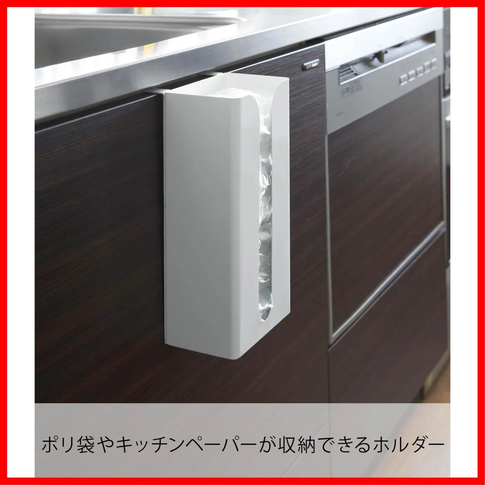 【人気商品】約W13×D11.5×H26cm ホワイト プレート キッチンペーパーホルダー Plate & 戸棚下収納 ポリ袋 キッチン収納 山崎実業(Yamazaki) 7982