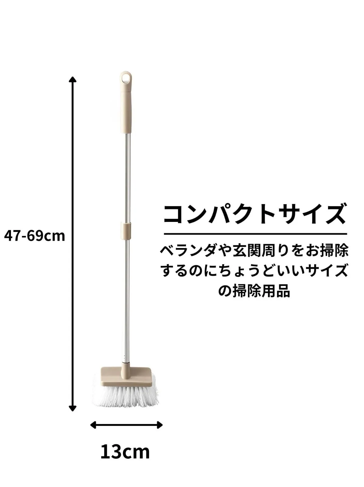 【特徴】玄関やベランダで使うのにぴったりのコンパクトサイズのブラシ。柄は伸縮するので、すっきり収納できます。