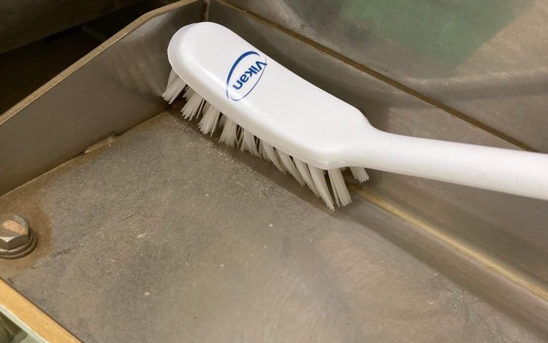 【あらゆる場面の洗浄に役立つ】角度のついた持ち手とくびれ形状のブラシで、凹凸のある部分やアールがかかった箇所の洗浄も容易です。機械周り、パーツ、ザル等の容器など幅広い用途で使用できます。